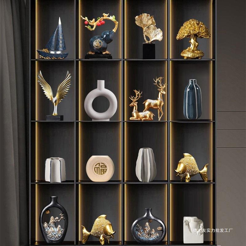 新中式轻奢摆件高端大气上档次办公室博古架展示柜装饰品工艺品
