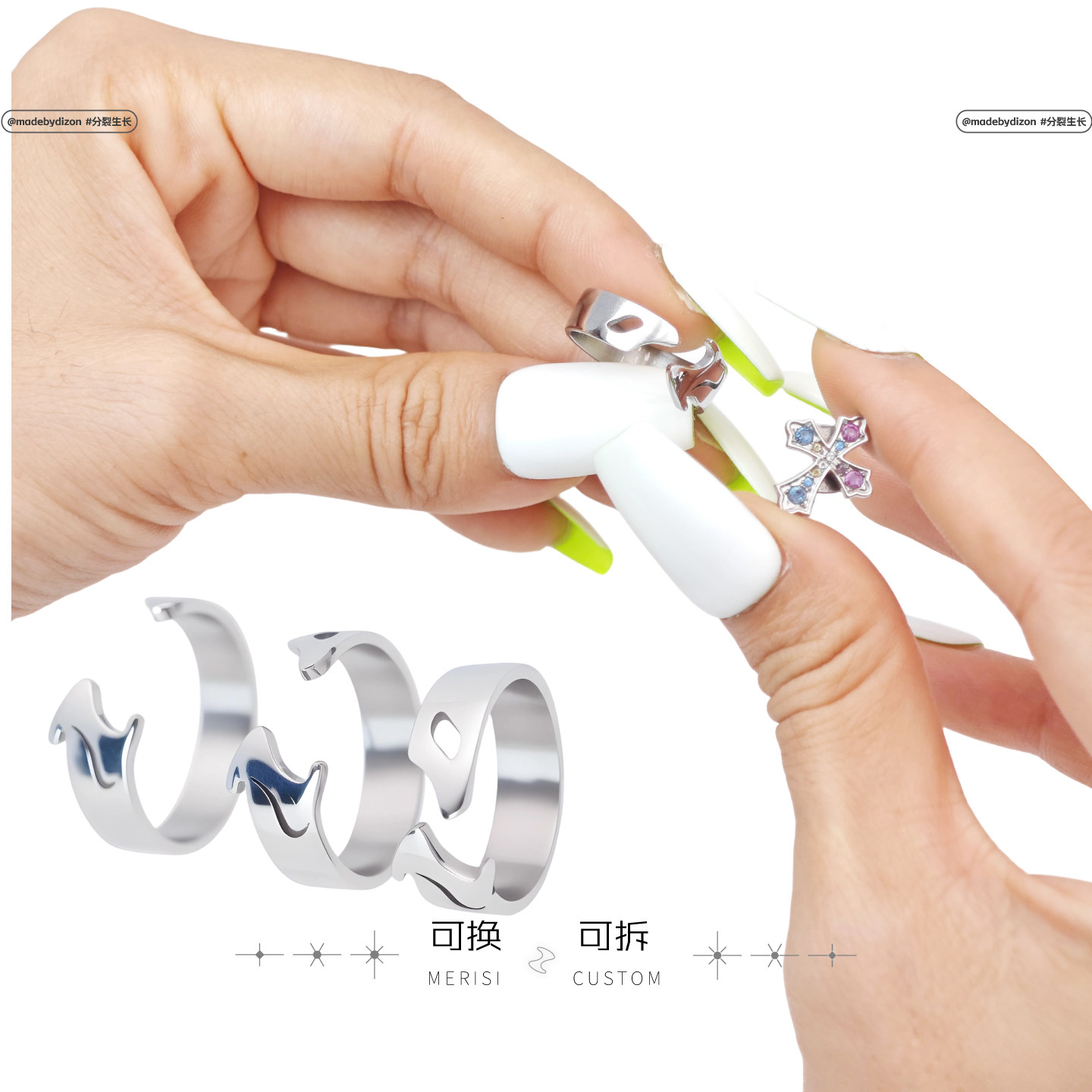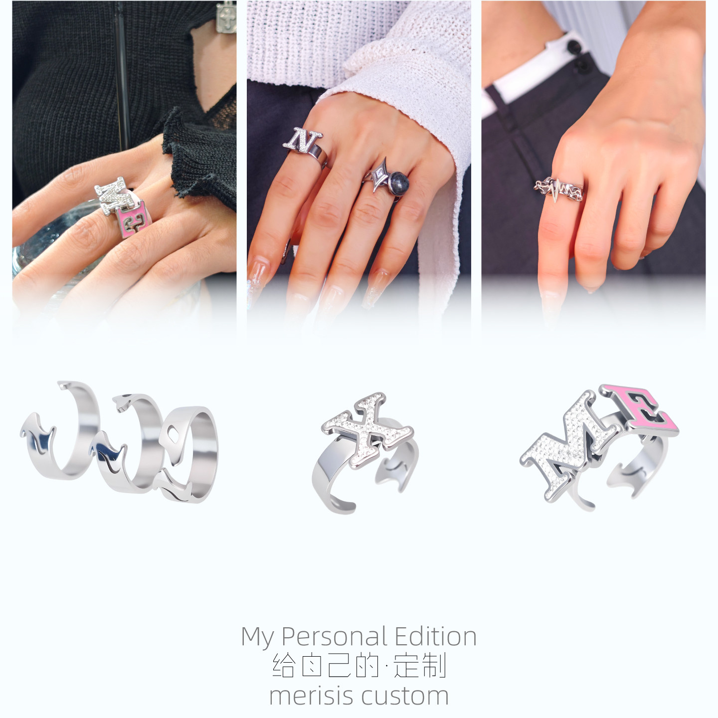 分裂生长*定制可换字母开口戒指女粉色闺蜜款食指y2k中性小众情侣