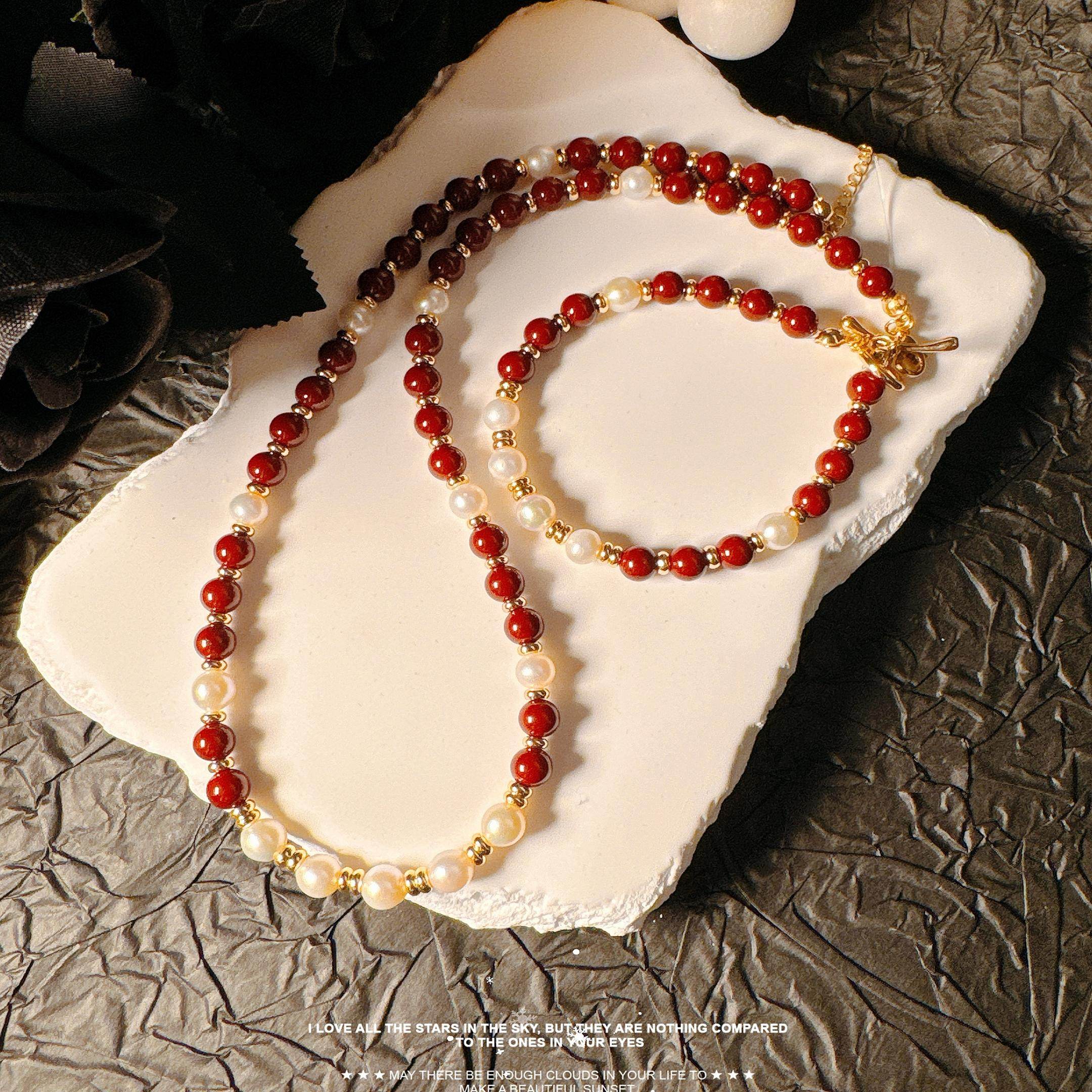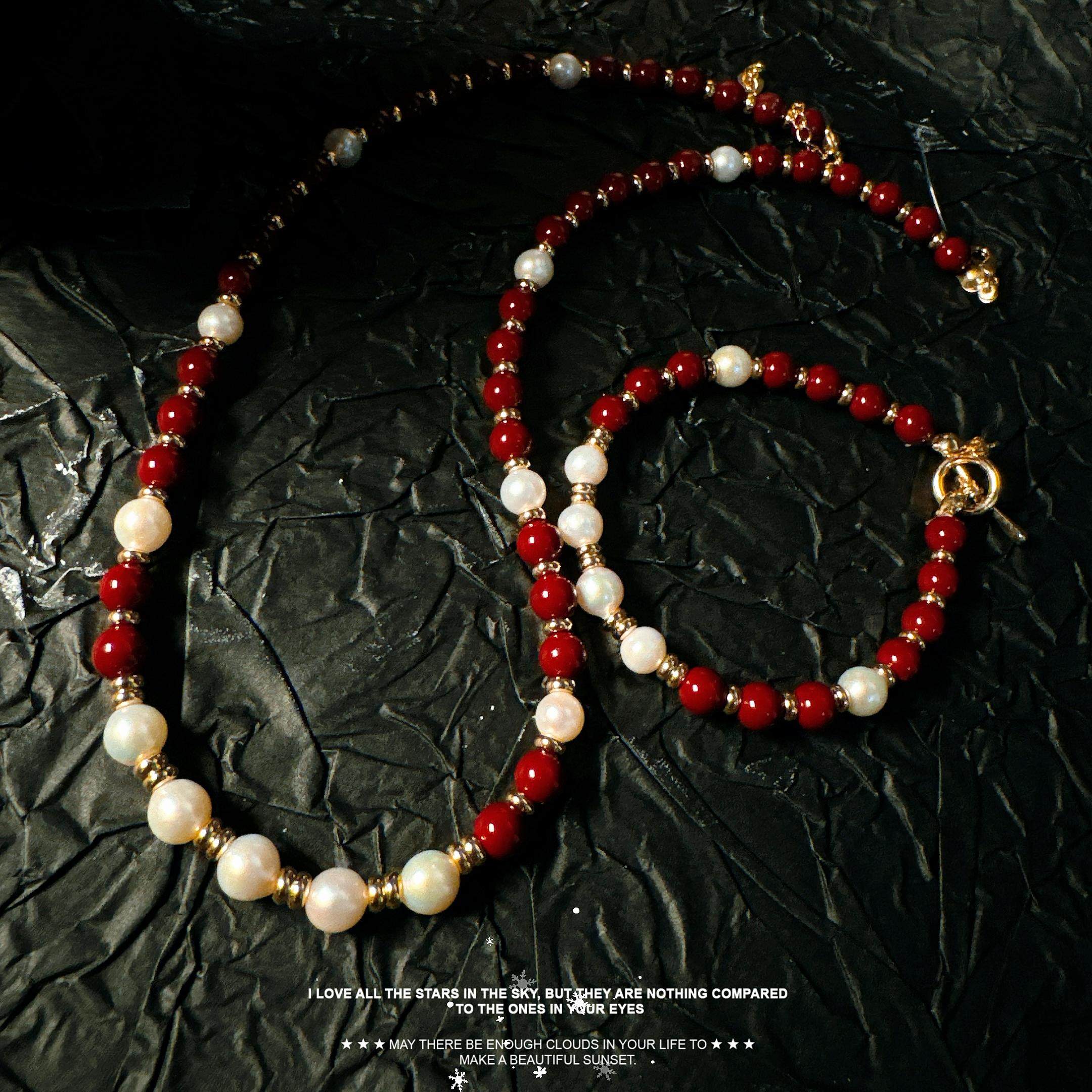 岛屿暖阳原创新年系列复古天然珍珠 财财好运来的安哥拉红色项链