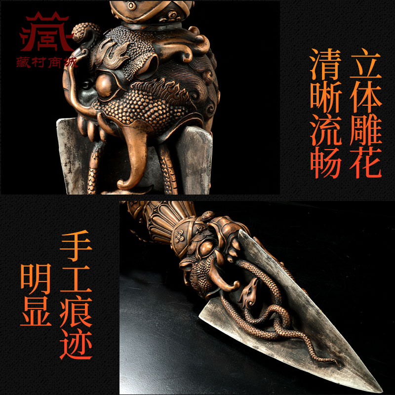藏村尼泊尔进口三面普巴铜铁金刚撅室内家用金刚杵装饰摆件