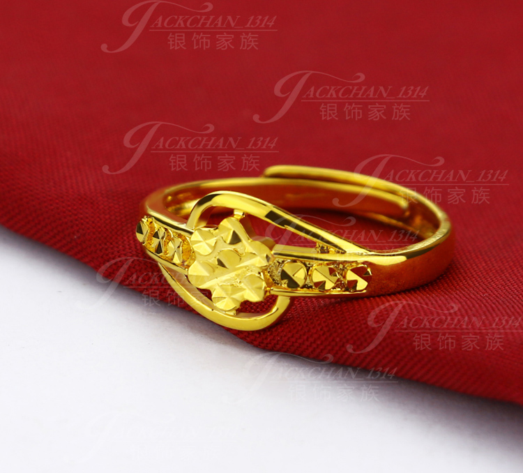 镀24k真金女士欧币首饰越南镀黄金戒指饰品花朵开口不掉色金戒子