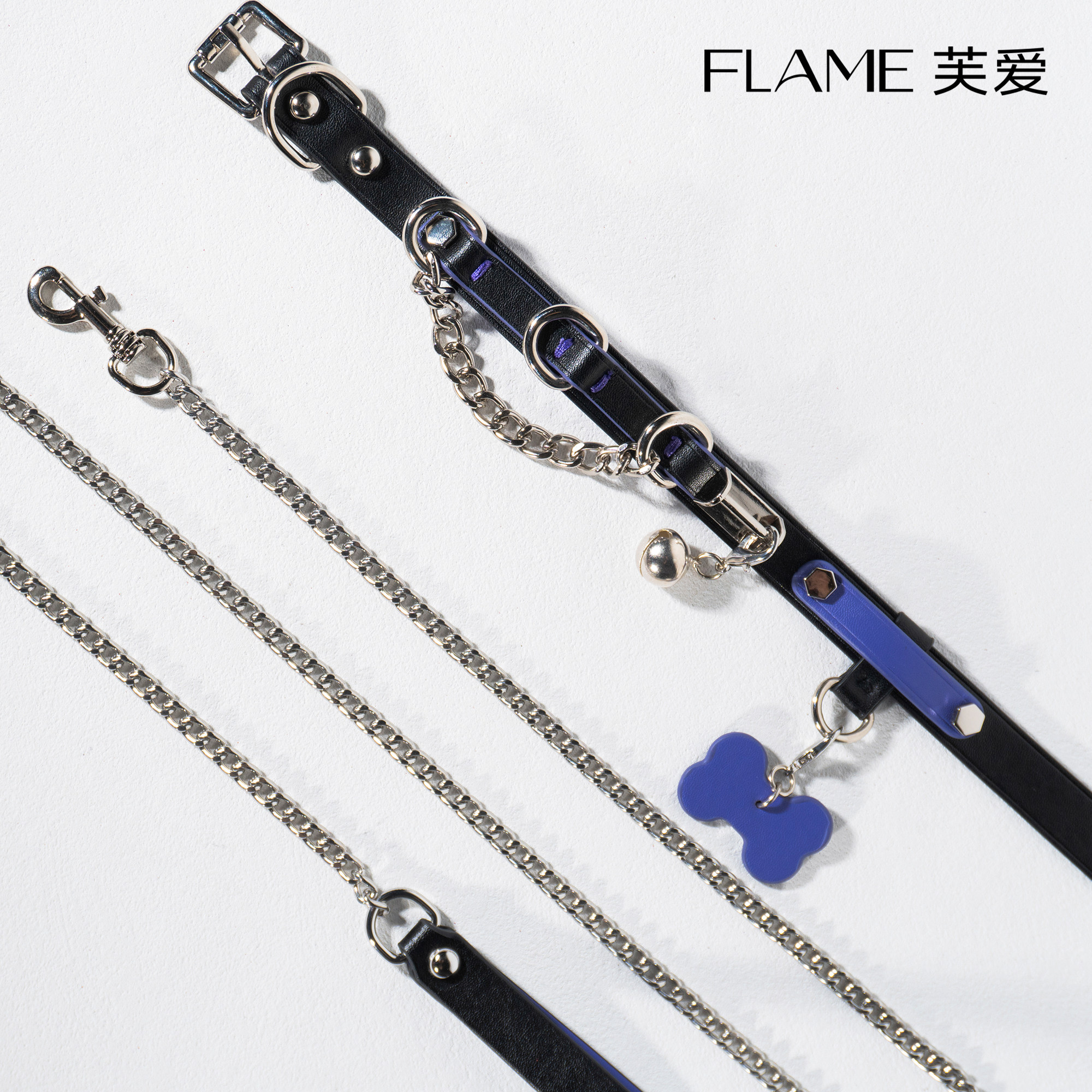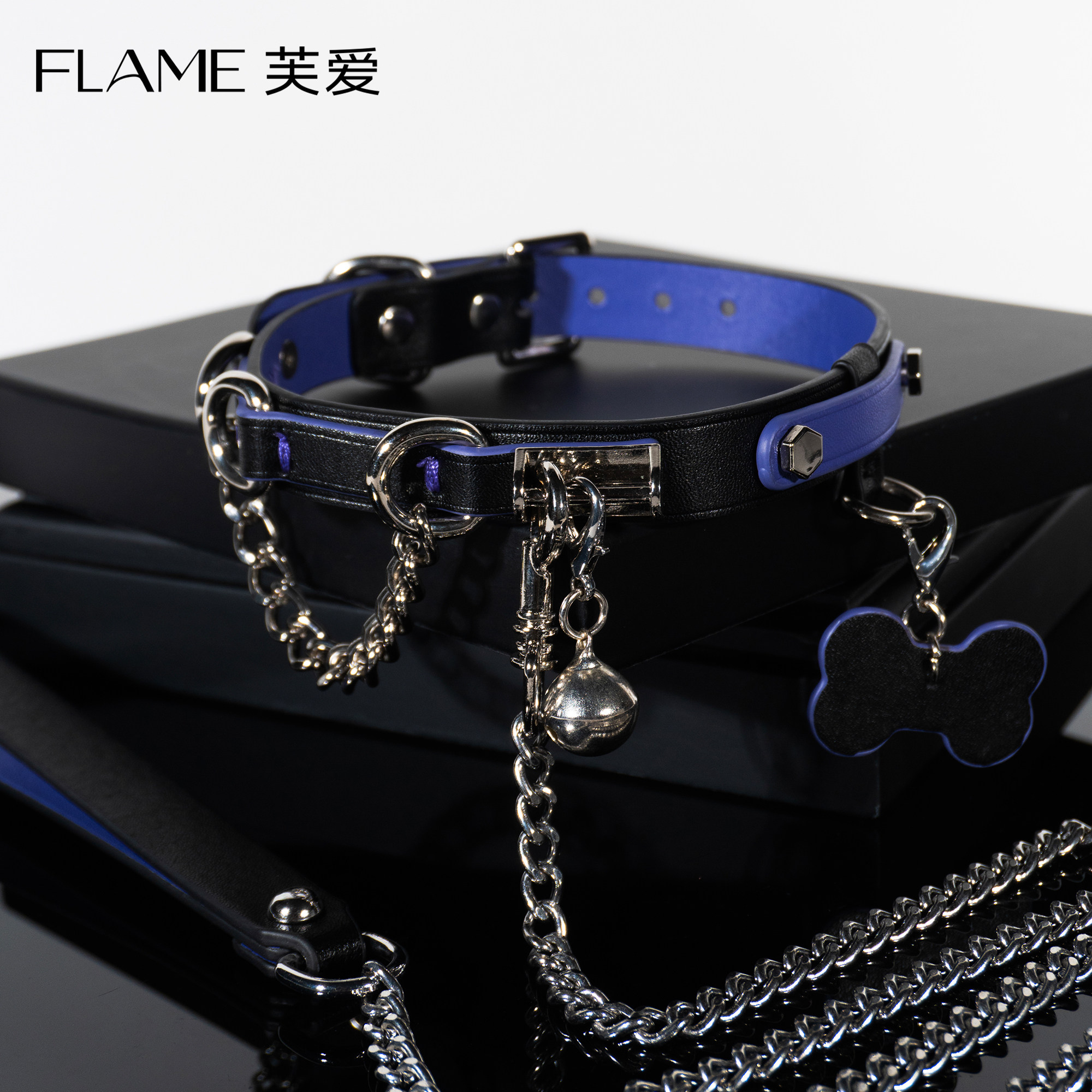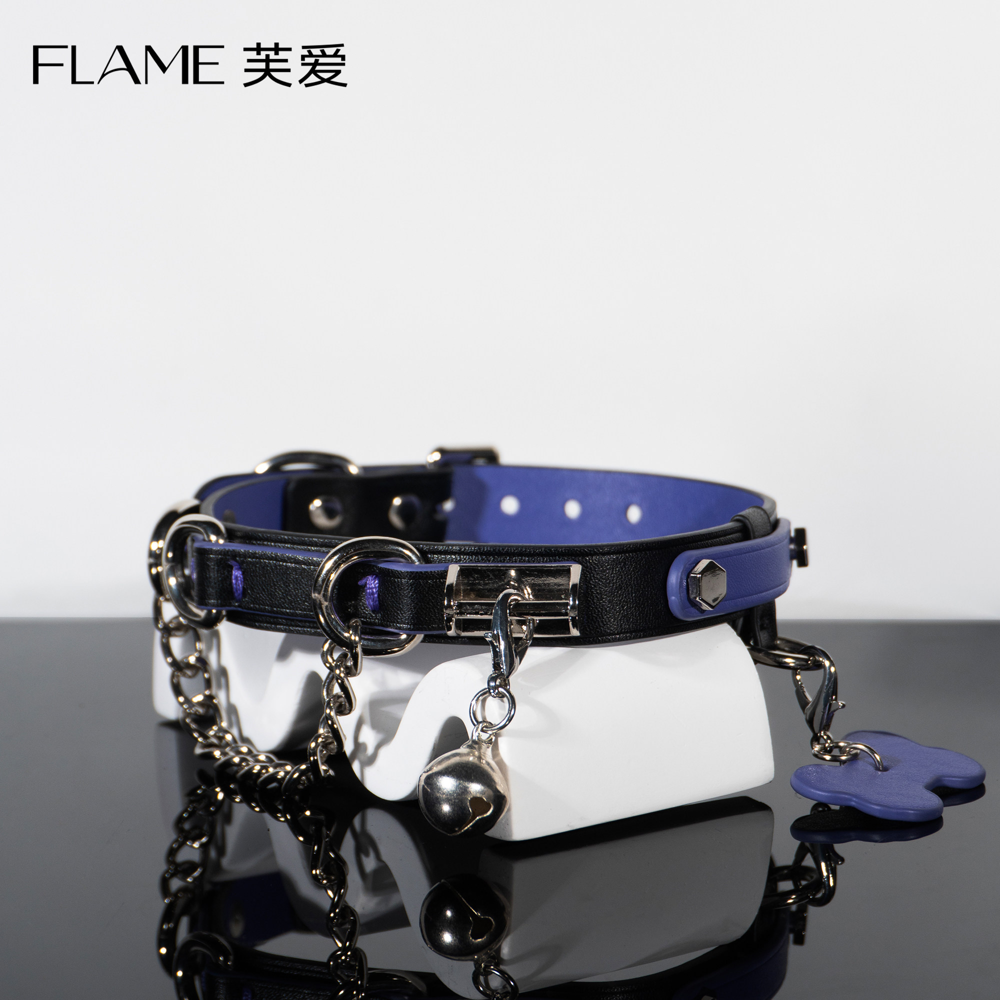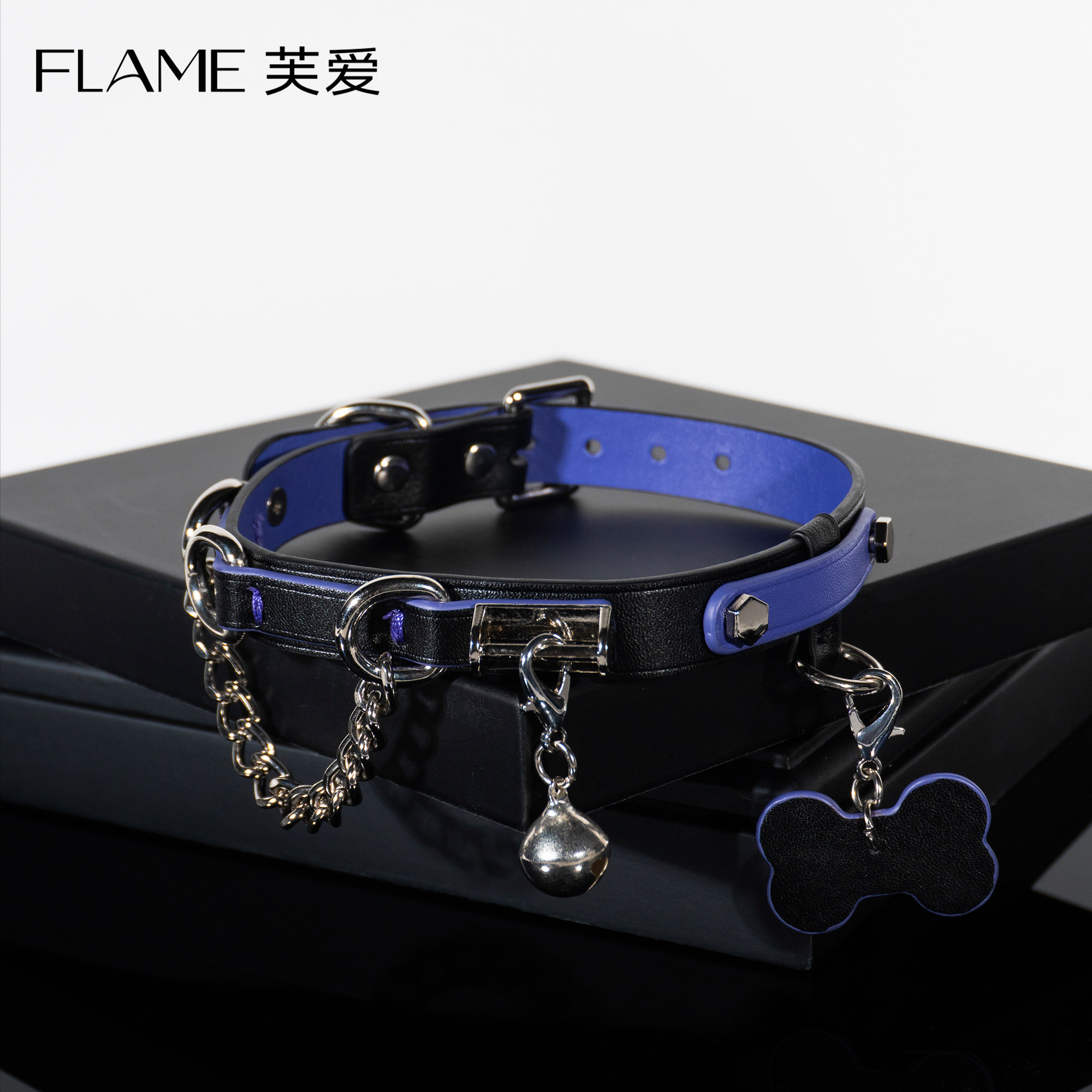 FLAME原创真皮黑紫兔头铃铛项圈choker女m颈圈男脖圈颈饰刻字狗牌