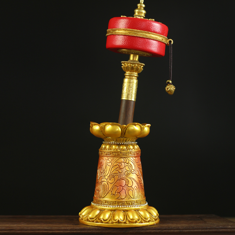 西藏用品 精美树脂莲花手摇转金轮底座 镶嵌密宗修行法器