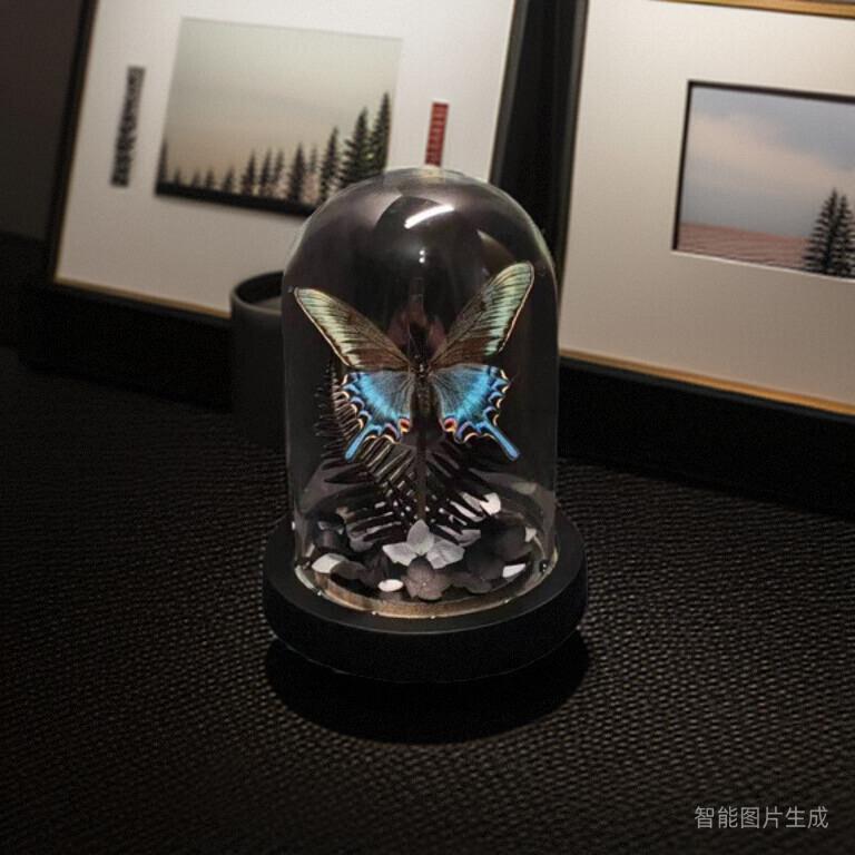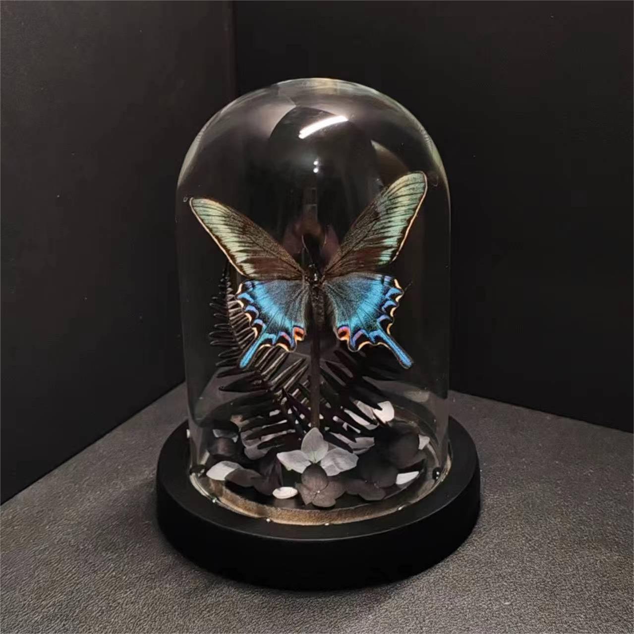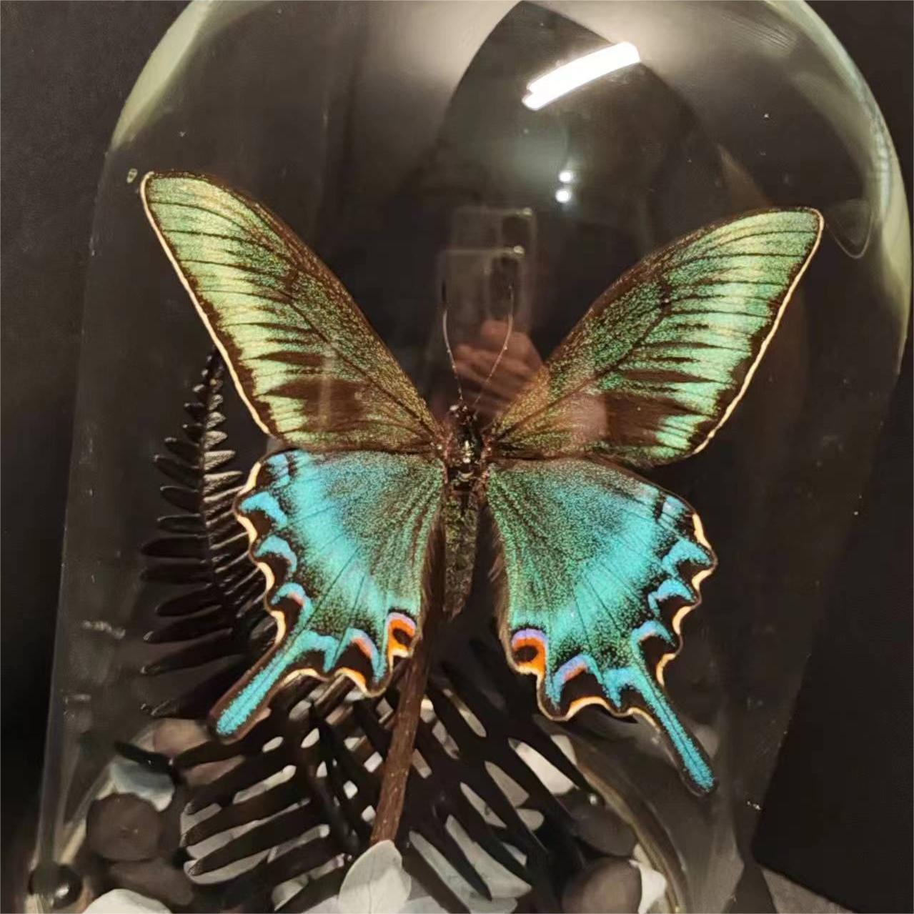 绿带翠凤蝶森林绿皇后真蝴蝶标本艺术玻璃罩摆件手工生日收藏礼物