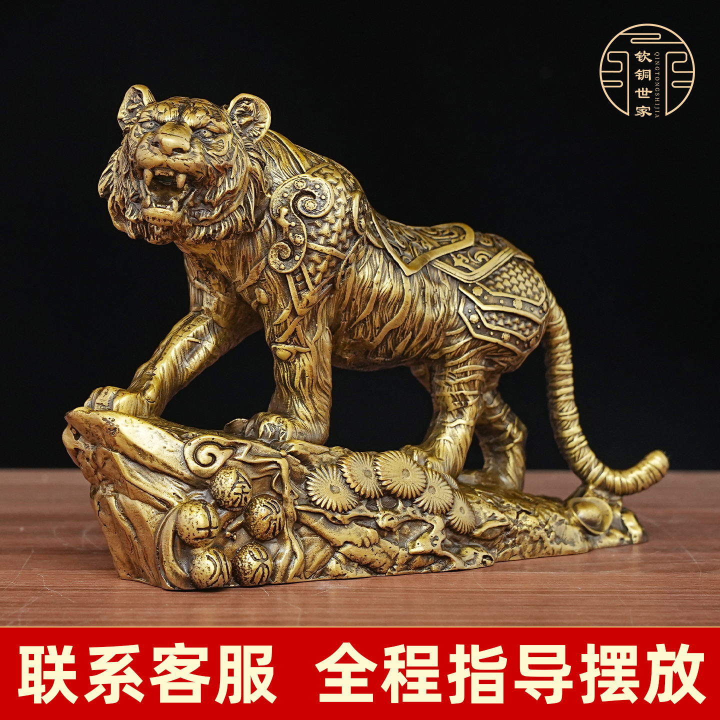 黄铜老虎摆件上山虎生肖虎瑞虎镇宅办公室家居工艺礼品