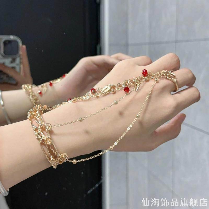 红色戒指一体链结婚表演手链装饰夸张手镯儿童洛丽塔手饰森系配饰