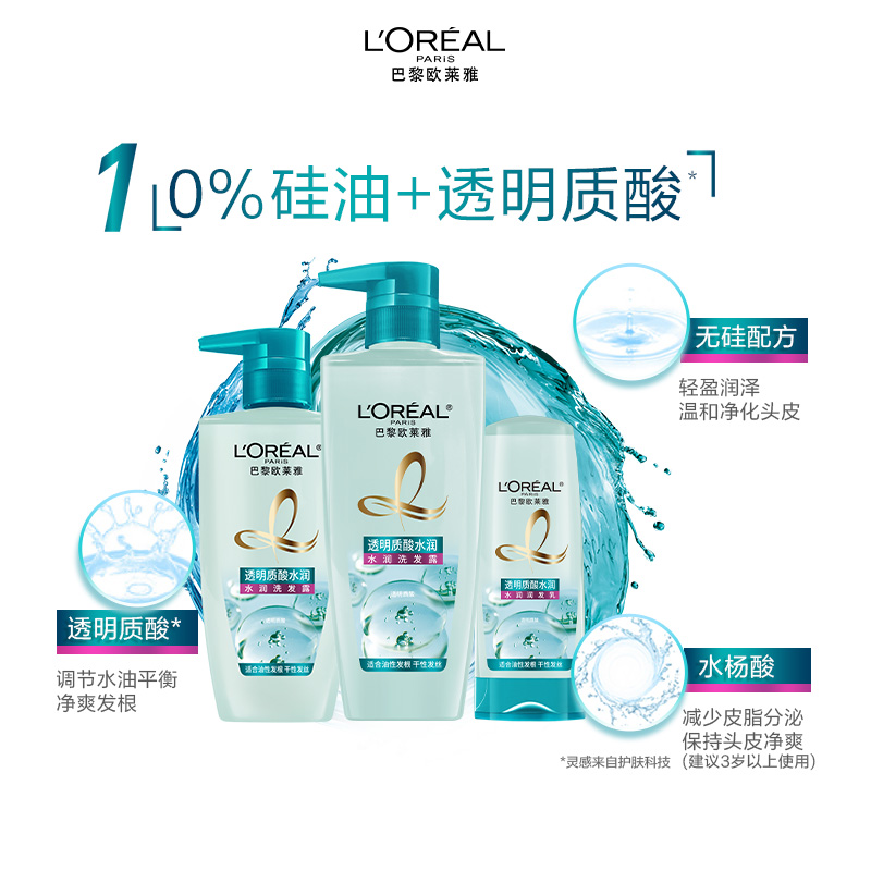 欧莱雅精油质酸多效修护茶树洗发水套装柔顺滋养无硅油控油去屑
