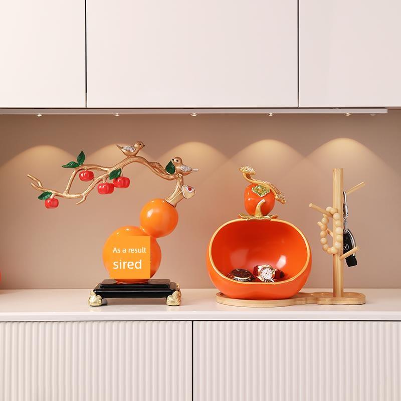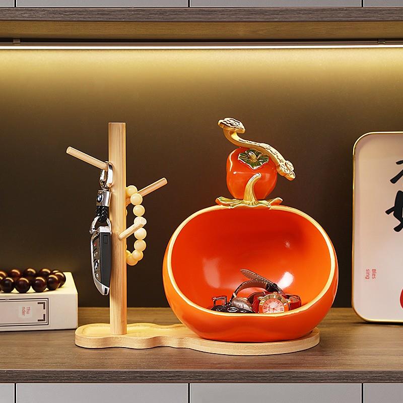 新中式柿柿如意钥匙收纳摆件进门入户鞋柜玄关装饰品乔迁新居礼品