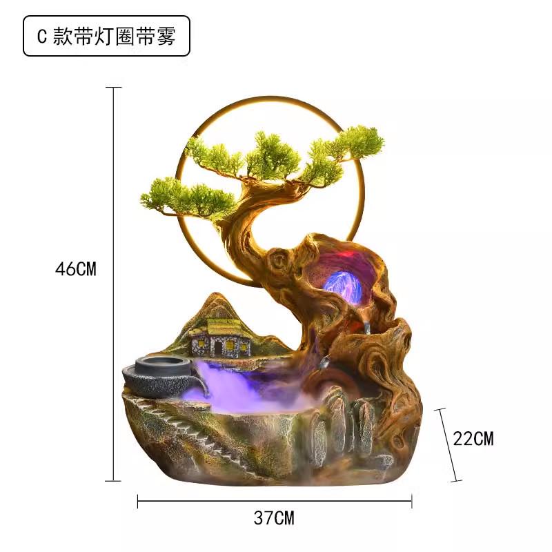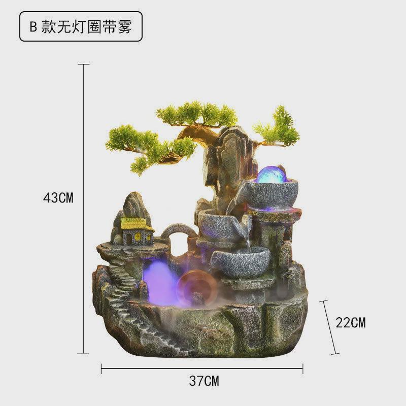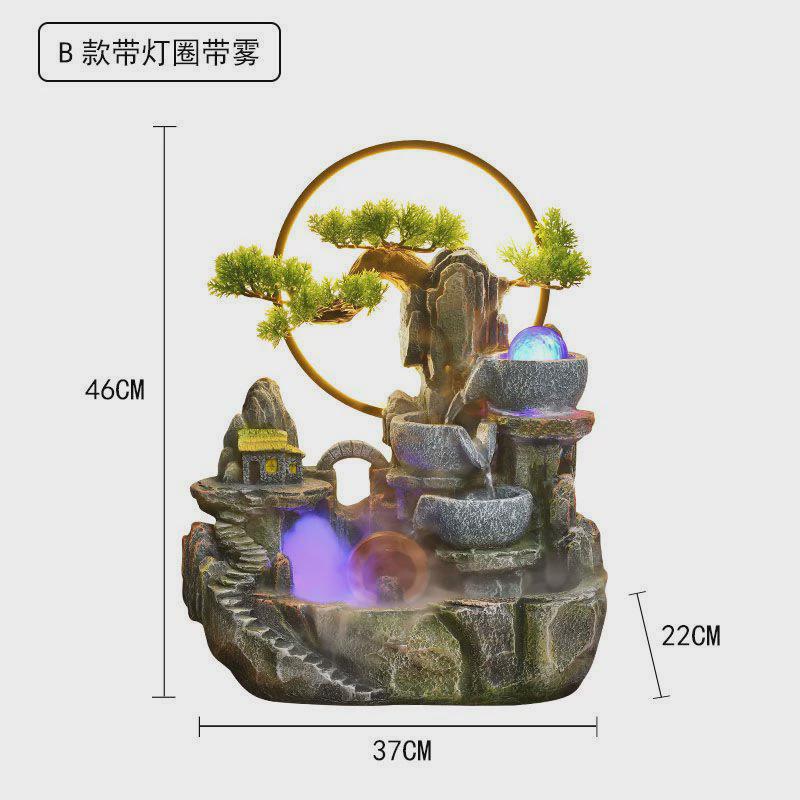 qt小型假山流水摆件客厅水景循环桌面流水轮喷泉加湿器装
