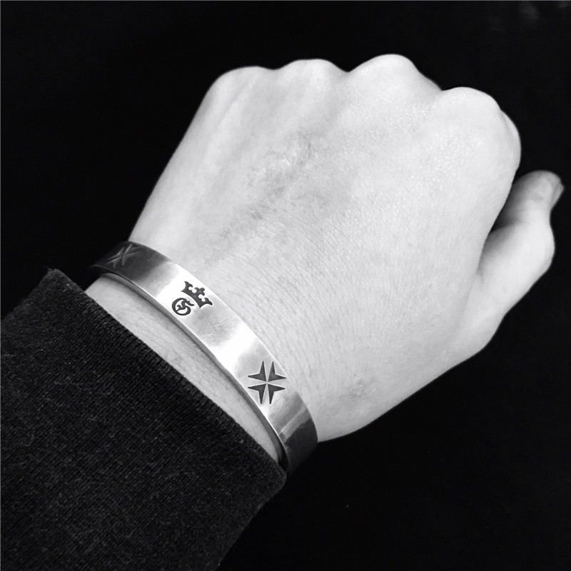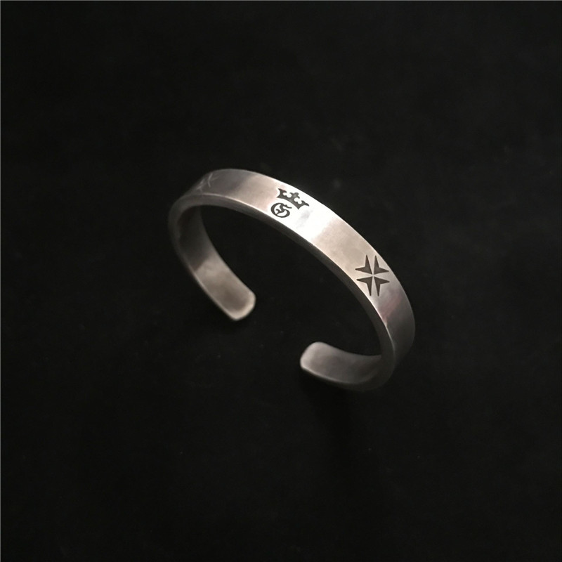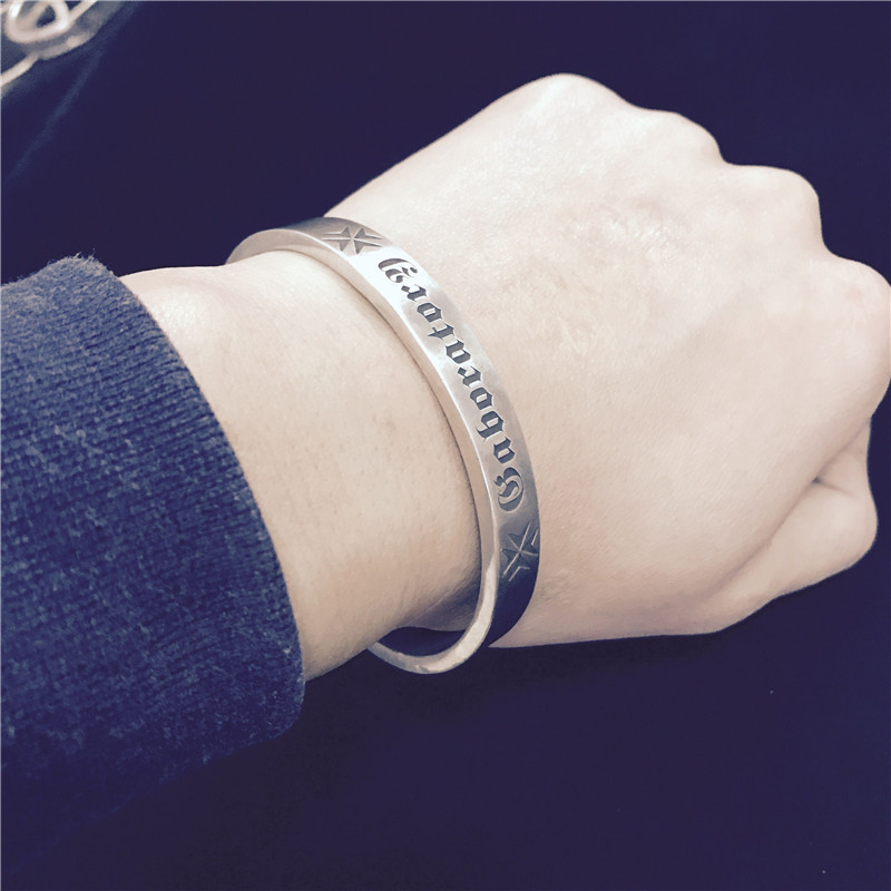 千银厚果欧美风格经典平打手镯 男士女士手镯重金属摇滚925银手工