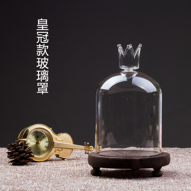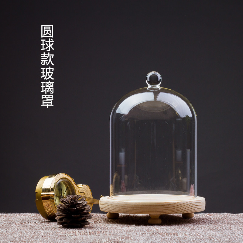 创意简约永生花玻璃罩3D手握模型桌面摆件M蜡烛微景观防尘展示罩