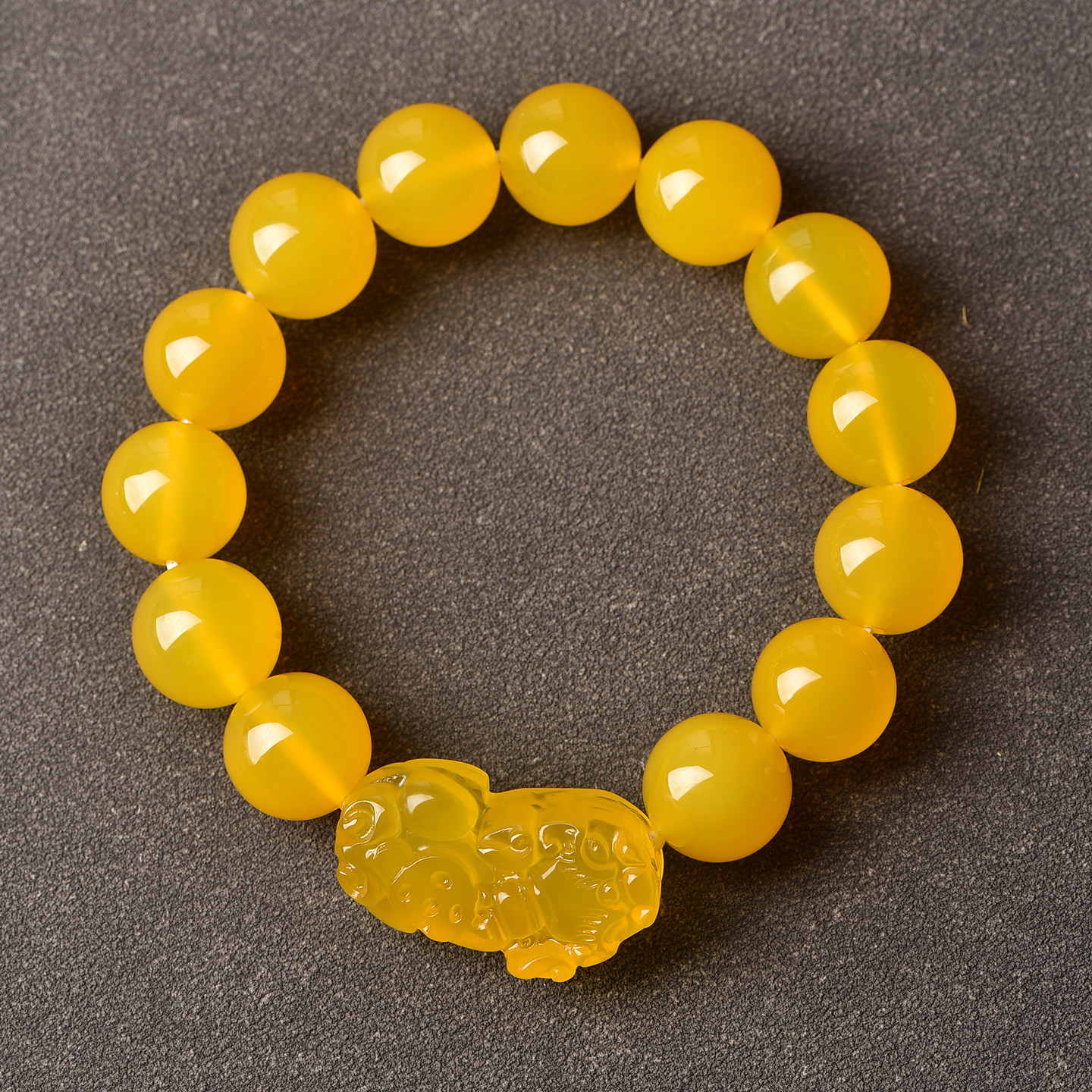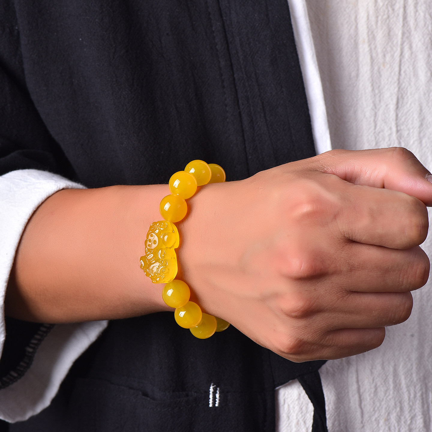 天然黄玉貔貅手串黄色玉石水晶黄玉髓玛瑙本命年招财手链男士女款