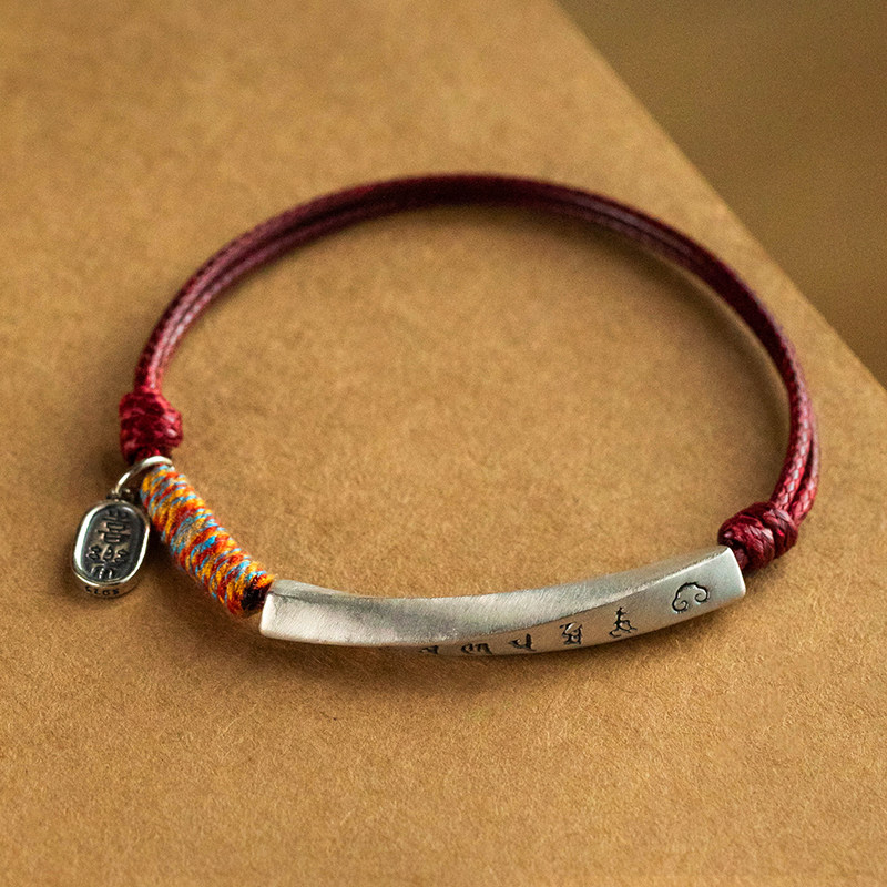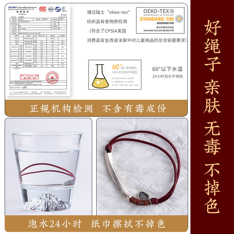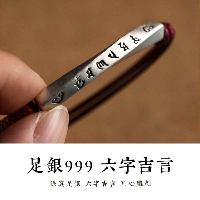 大善堂足银六字吉言手绳手工编织本命年红色手链男女护身马年礼物
