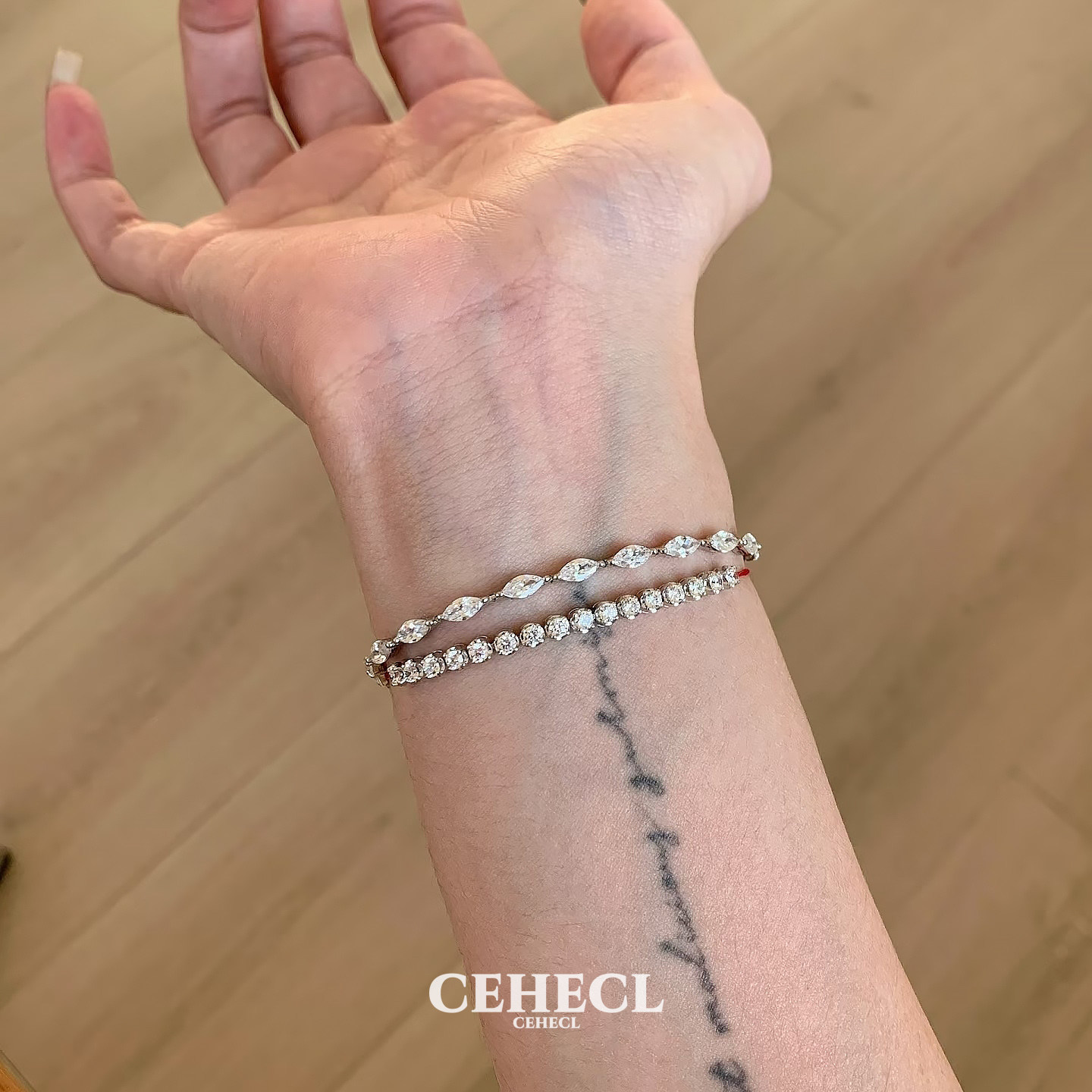 赛赫琳爆闪满钻银色马眼钻手链女高级感轻奢小众气质百搭叠戴手饰