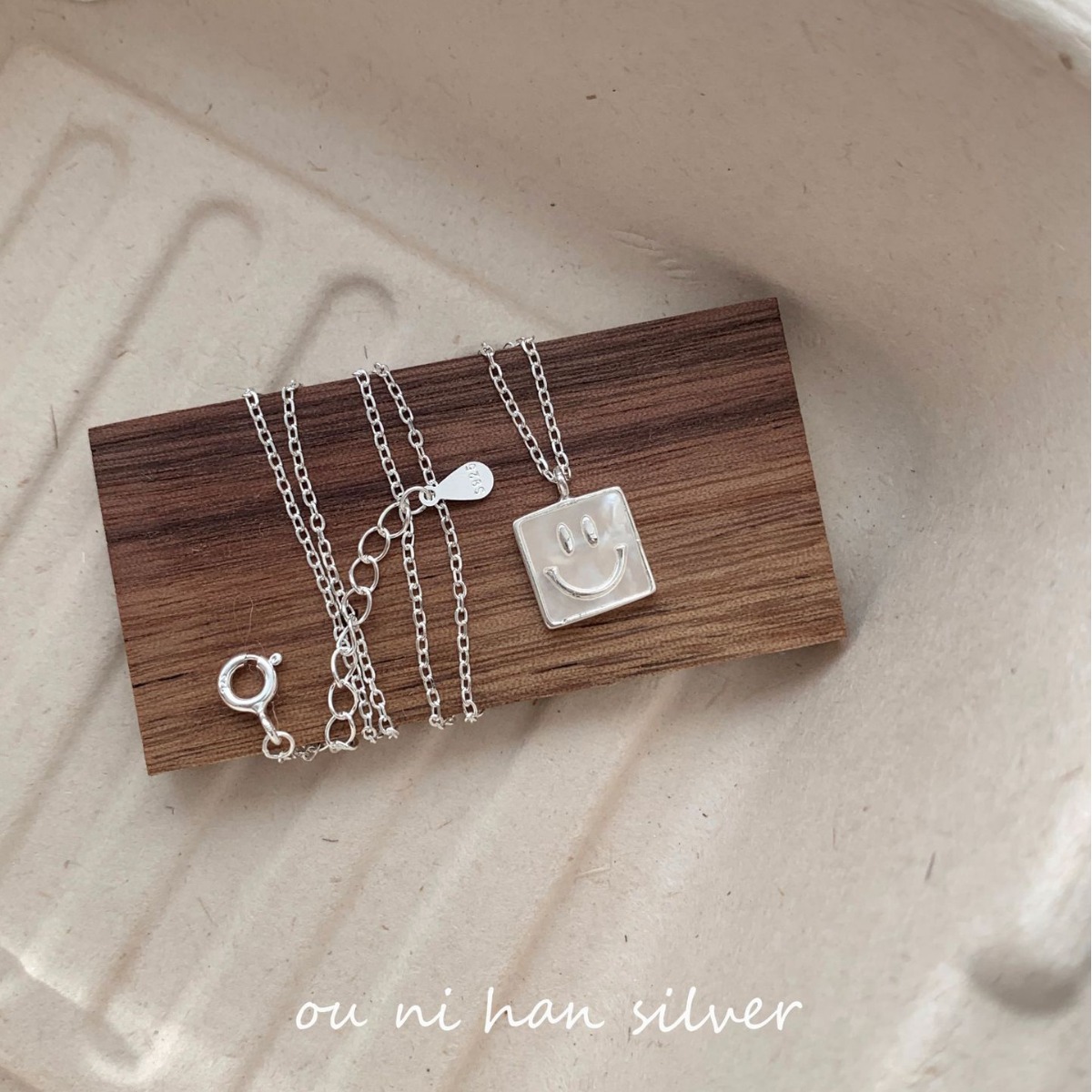 lulu 韩系S925纯银母贝笑脸项链女小众设计极简百搭ins气质锁骨链