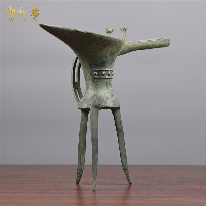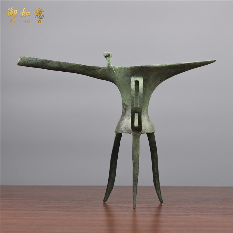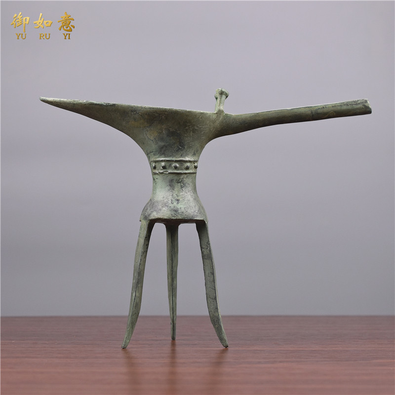 仿古青铜器乳钉纹爵西周青铜爵杯古代酒具酒杯古玩收藏办公室摆件