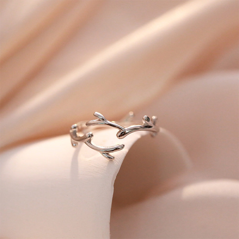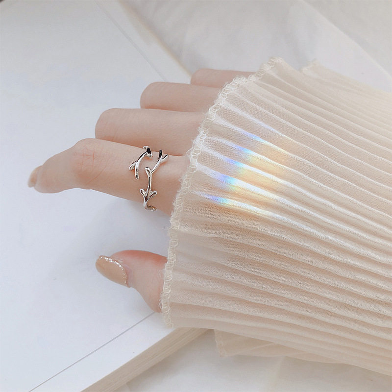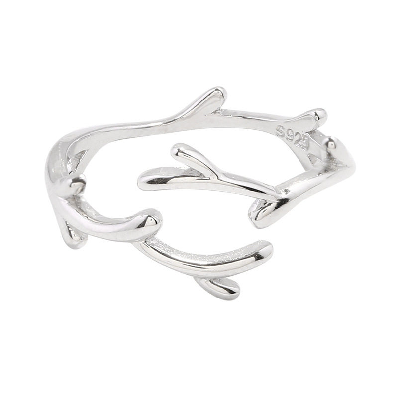 树枝开口食指戒指女简约纯银时尚网红日韩个性潮人气质学生小清新