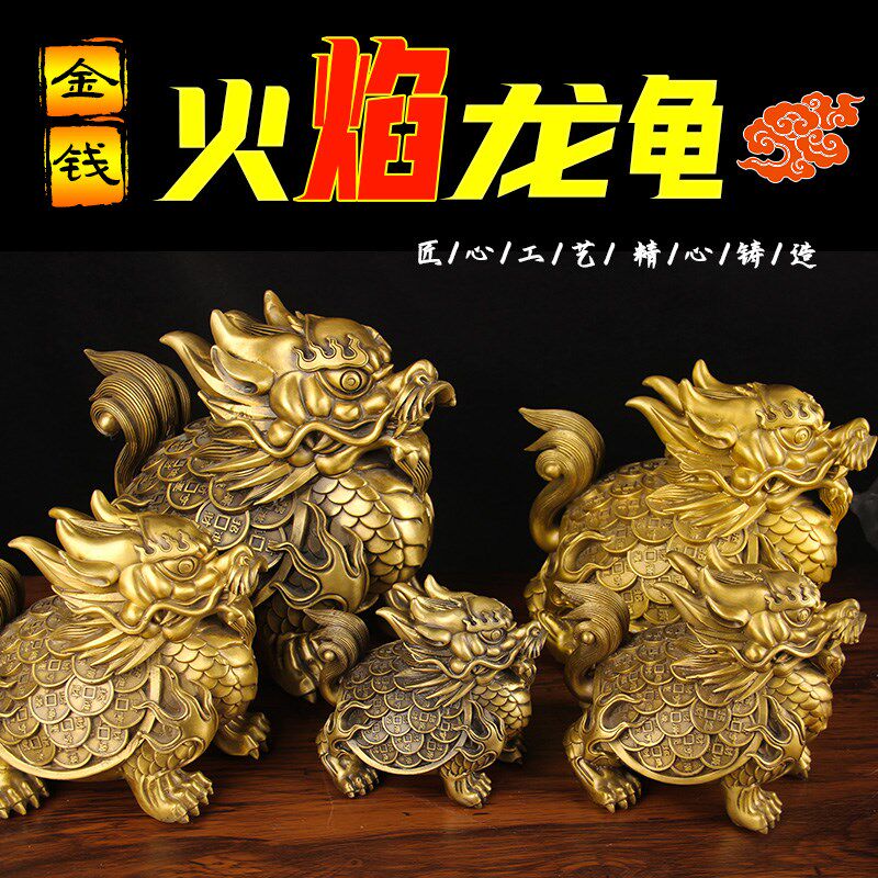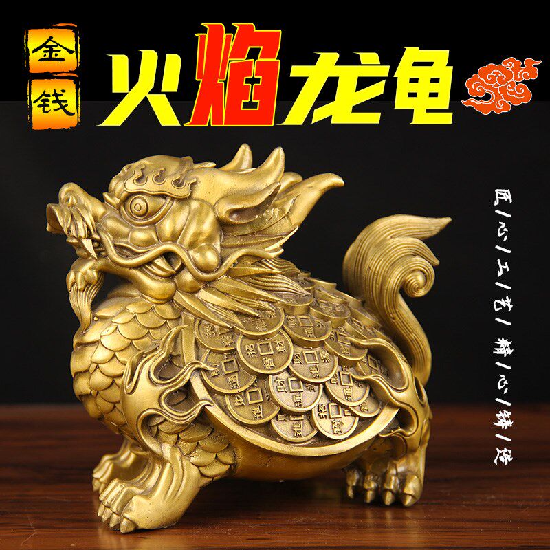 黄铜龙龟摆件家居铜八卦金钱龟办公室桌面客厅家居饰品铜龙龟