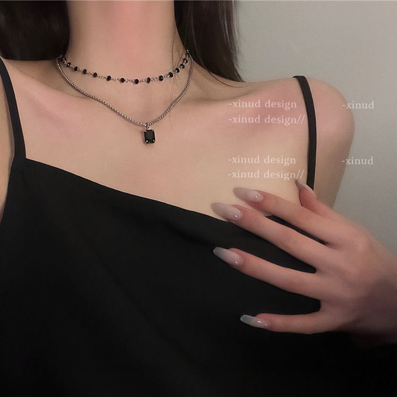 双层叠戴黑色镶钻项链ins风2021年新款简约轻奢感锁骨链颈链