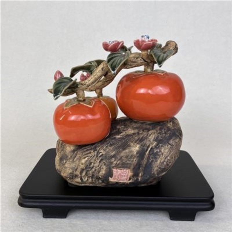 柿子好事连连陶瓷摆件石湾公仔客厅玄关酒V柜装饰品摆设