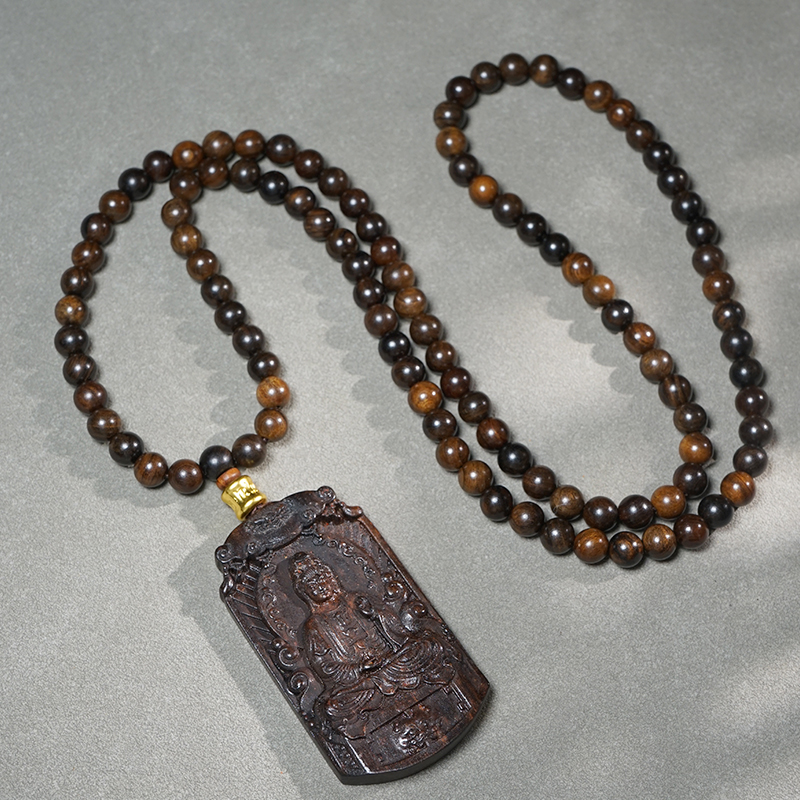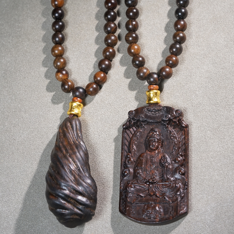 菩萨棋沉香木脖挂108颗带随型吊坠佛珠文玩木串念珠手链