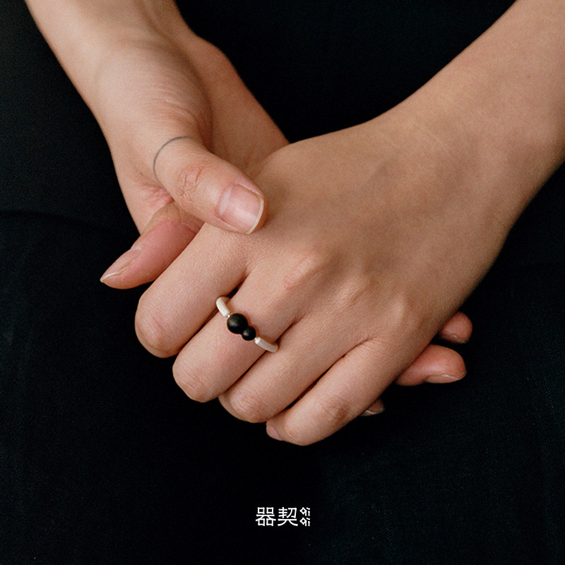 QIQI器契 如愿葫芦纯银戒指 原创设计黑檀乌金黄杨 默叙