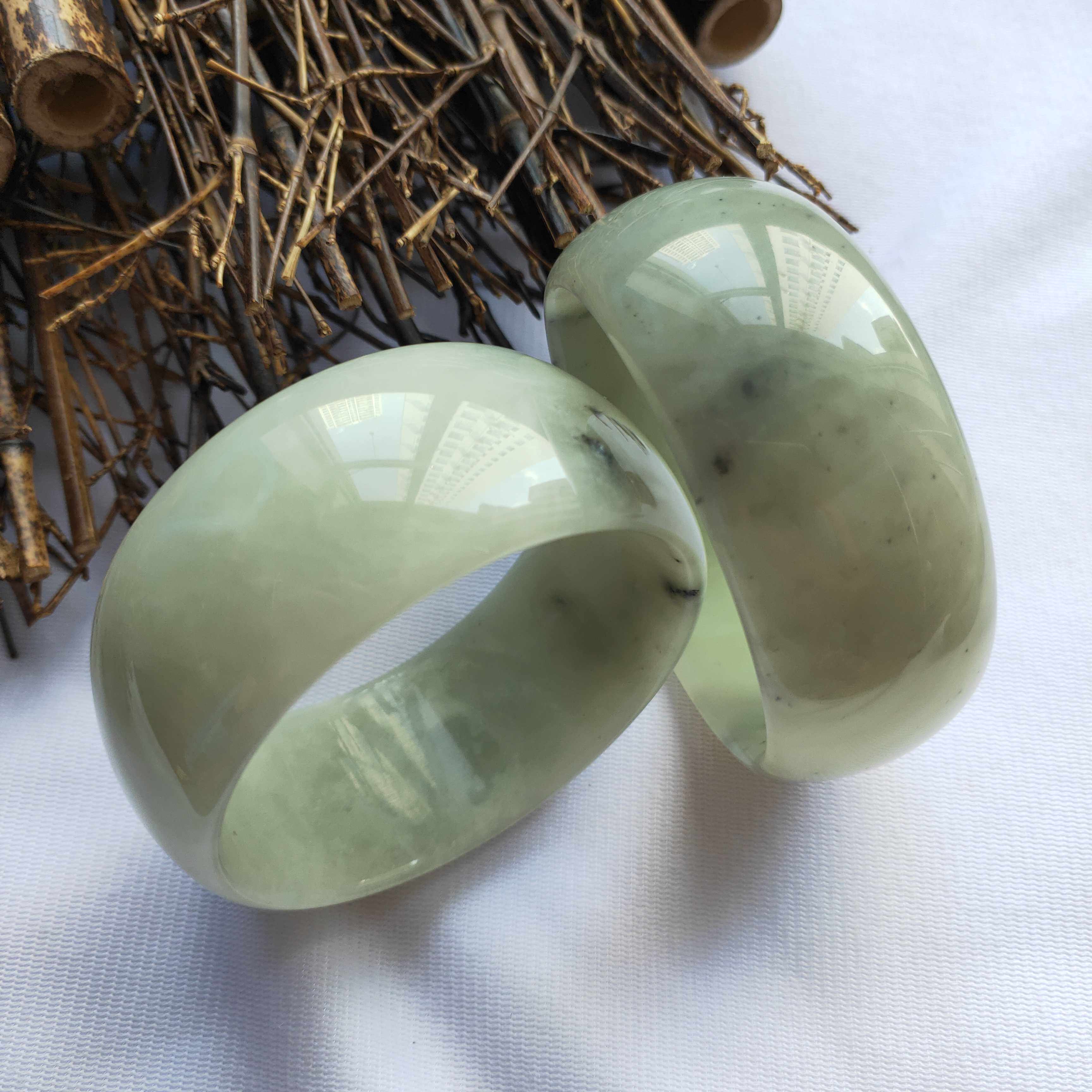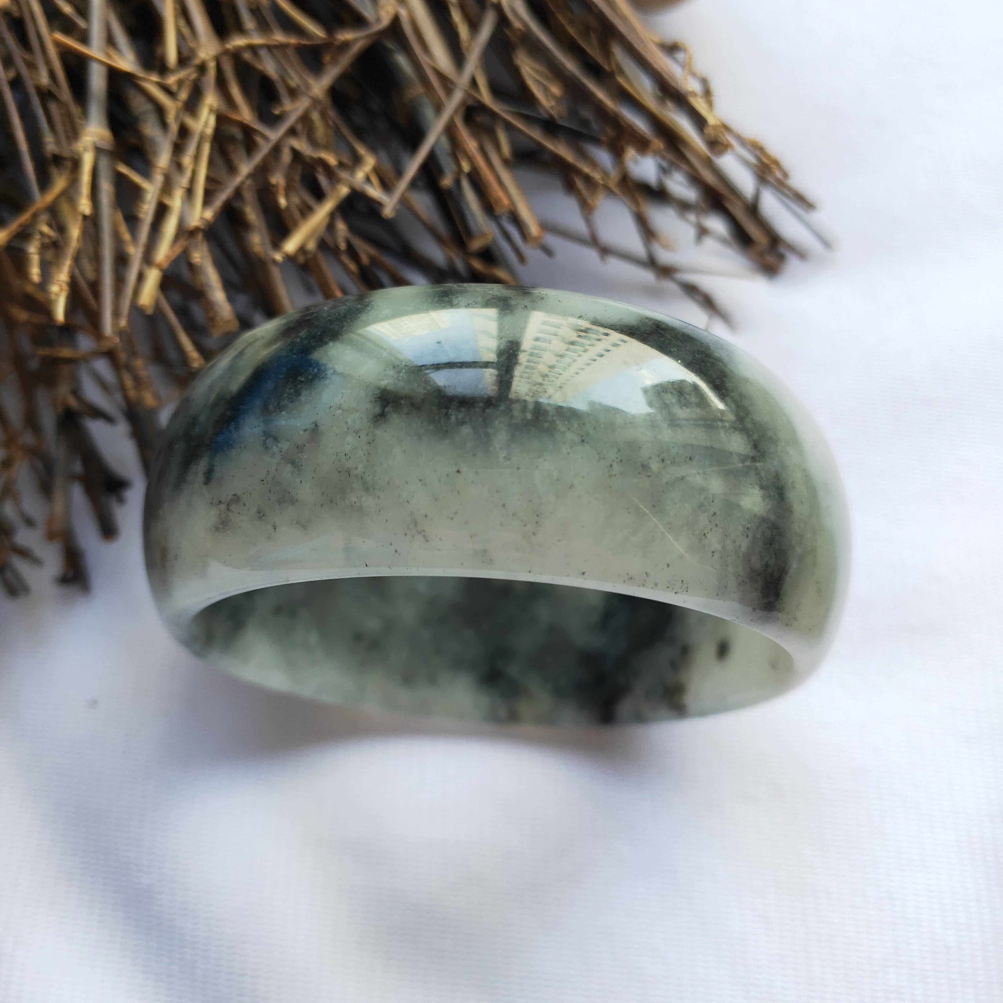 天然正品岫玉手镯 加宽版水墨玉镯 岫岩玉石宽条手镯 女款大口径