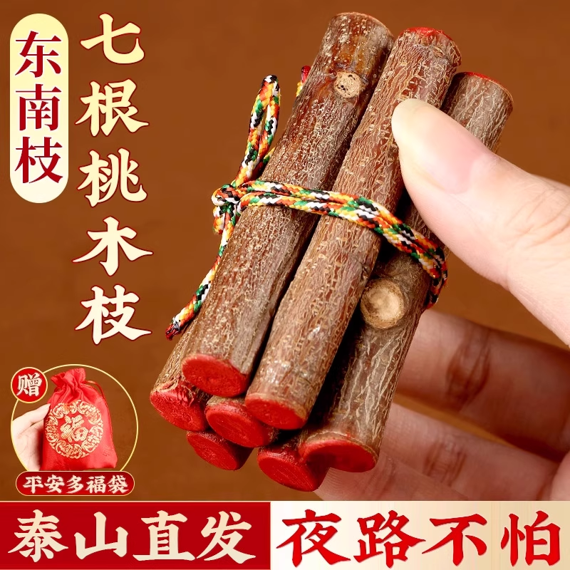 五色线桃树枝老桃木七根桃树东南枝婴儿童宝宝压惊孕妇随身挂件