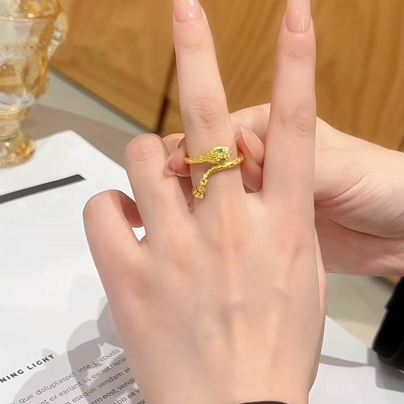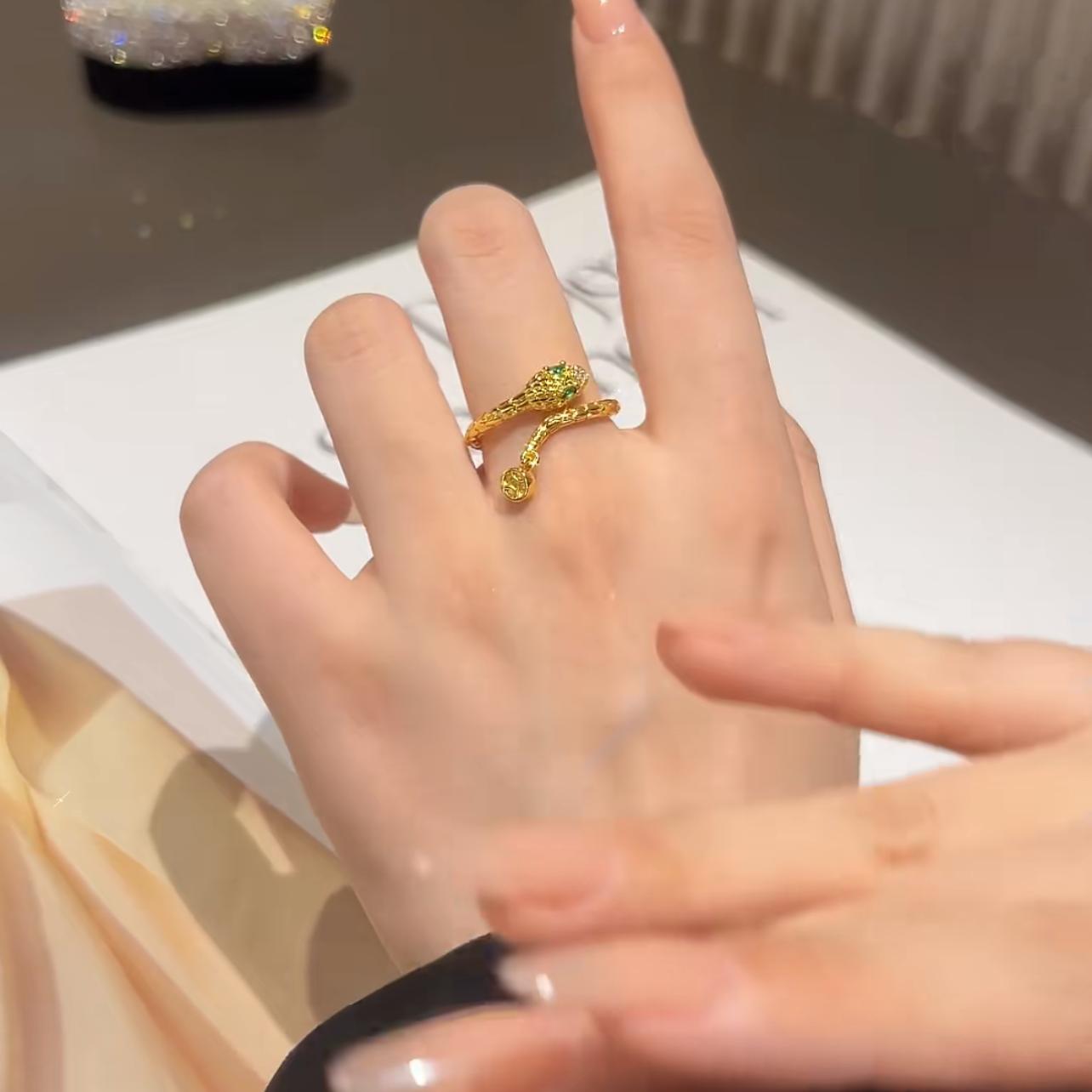 蛇形锆石开口戒指女轻奢高级感食指戒可调节小众设计时尚个性指环