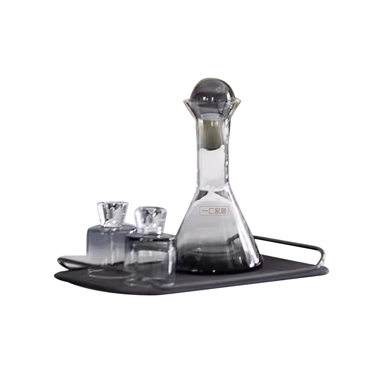 一匚 现代轻奢花器皮革托盘酒具软装饰品 样板房间茶几组合摆件