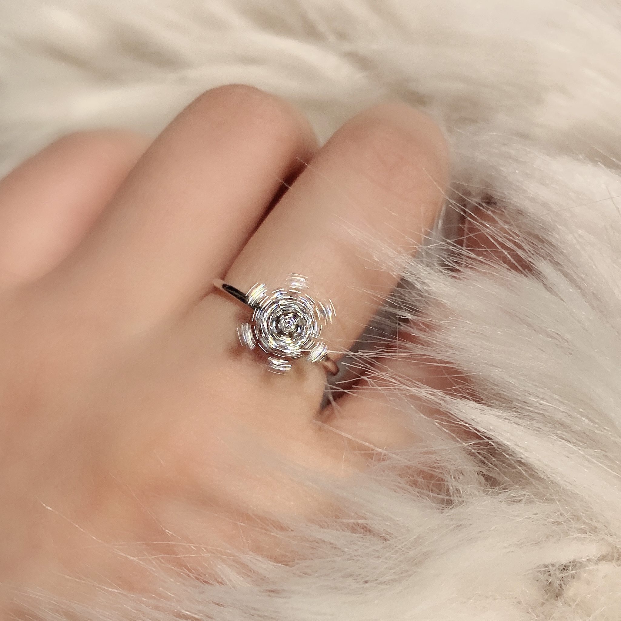 会转的雪花戒指可旋转转动气质百搭锆石戒子女轻奢高级感食指指环