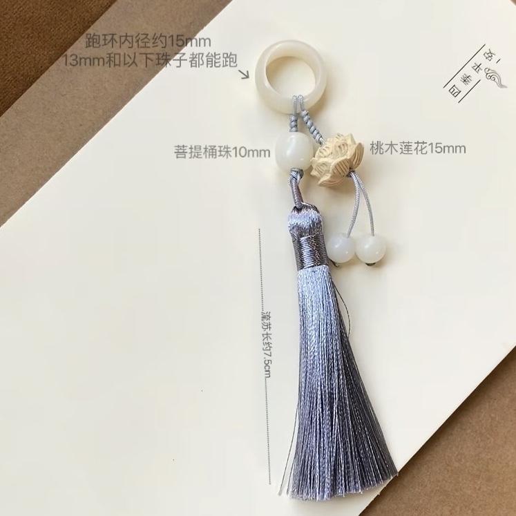 手编绳跑环DIY吊坠手串白玉菩提根手持藏式佛珠男女莲花流苏念珠