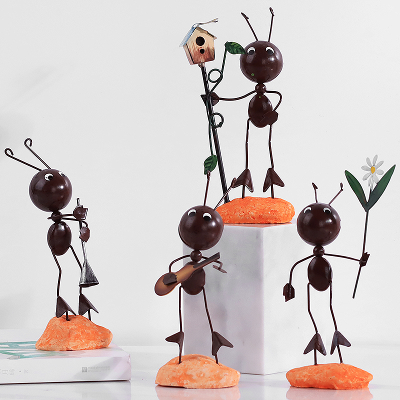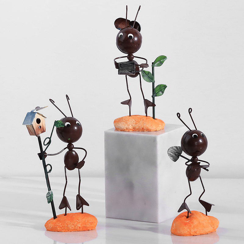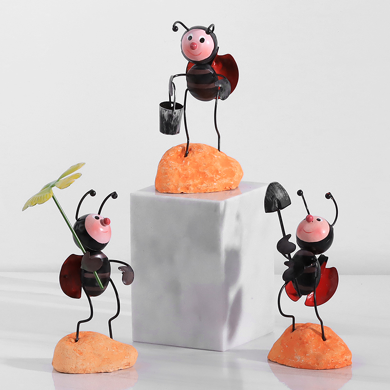 创意北欧可爱蚂蚁小瓢虫铁艺办公室摆件客厅家居电视柜装饰品摆设