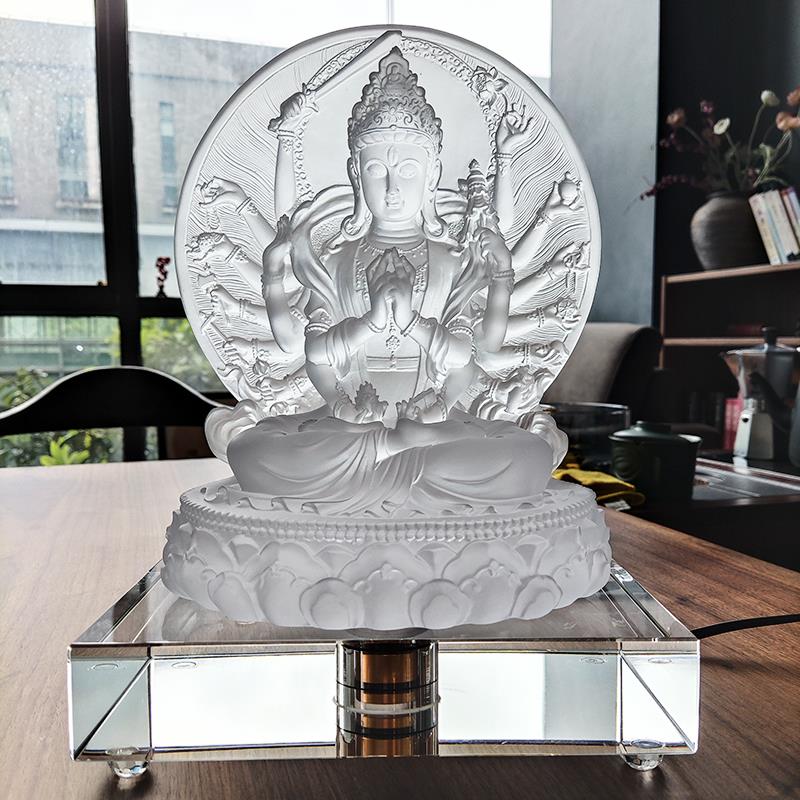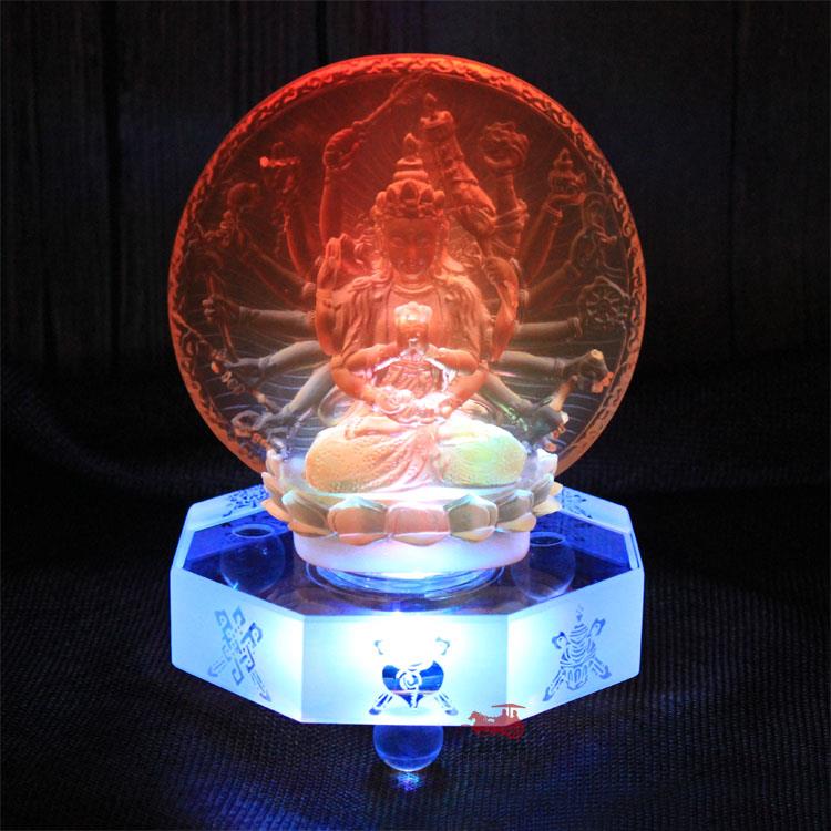 八吉祥水晶发光底座LED带线七色变换桌面发光灯座琉璃佛像舍利塔