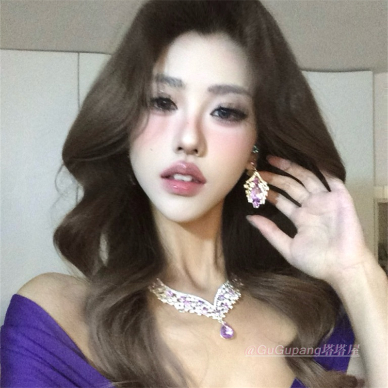 爆闪紫色水滴锆石项链耳环套装女轻奢高级感贵气晚礼服配饰锁骨链