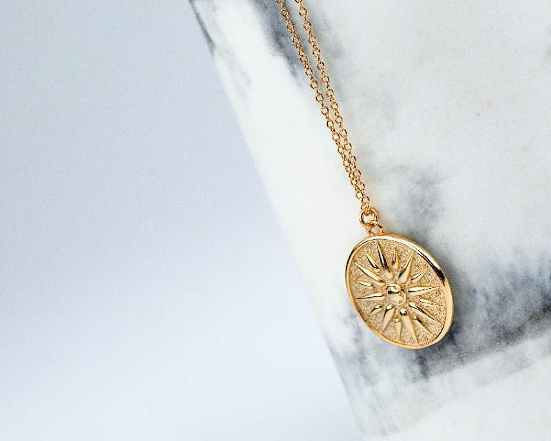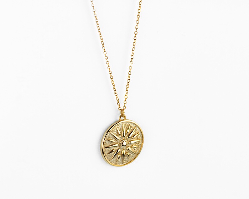 西班牙小众设计 纯银镀黄金色北极星项链太阳复古硬币圆牌毛衣链
