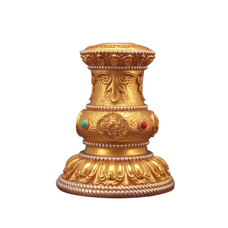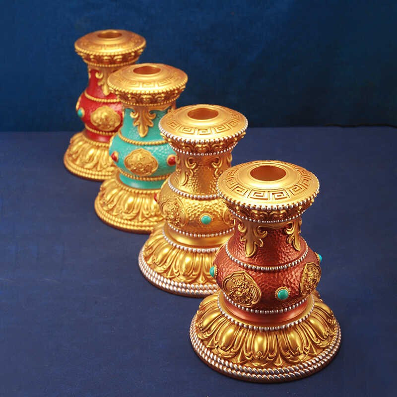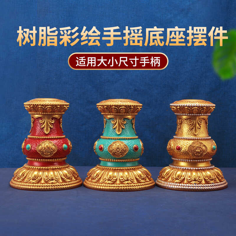 现货速发彩绘长柄手摇转金轮底座彩绘树脂转经简八吉祥座子锡杖家