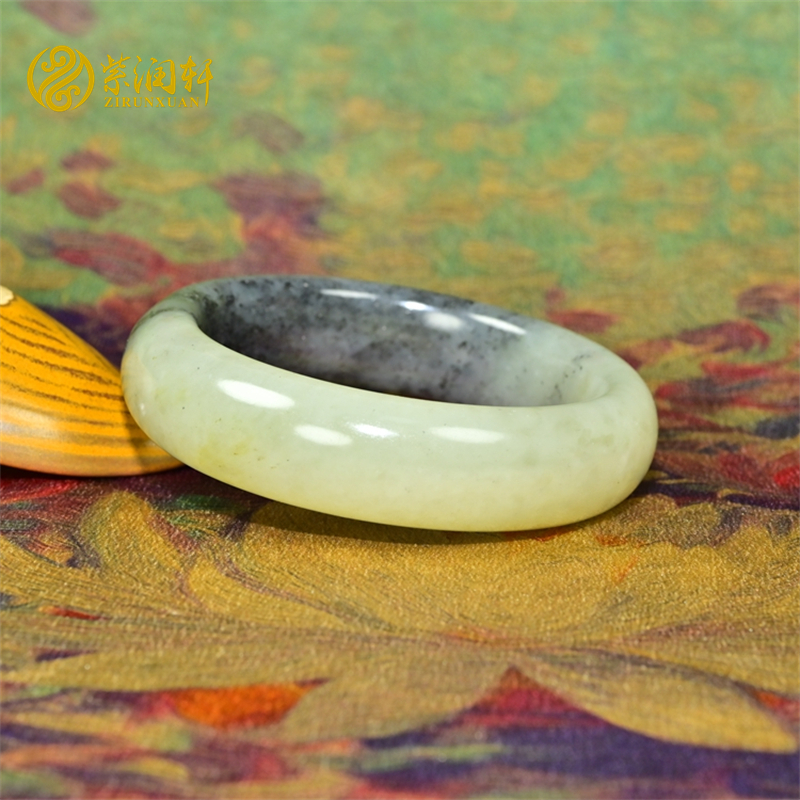 紫润轩新疆和田玉籽料手镯半山半水58MM正装水墨意境分明传家级