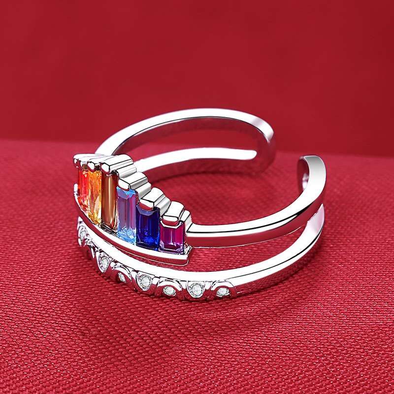 Zircon Rainbow Crown Ring Womens Fashion Color Diamond Open