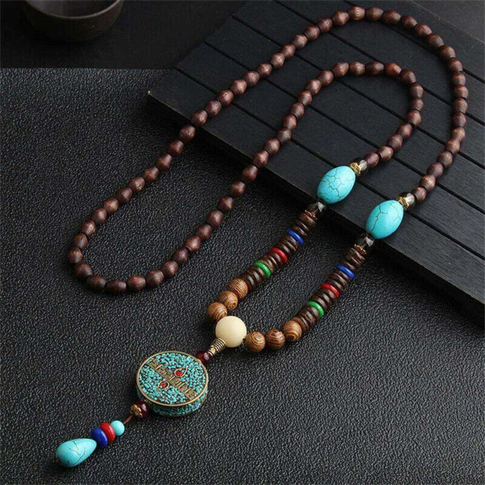 Unisex Handmade Nepal Buddhist Mala Wood Beads Pendant0