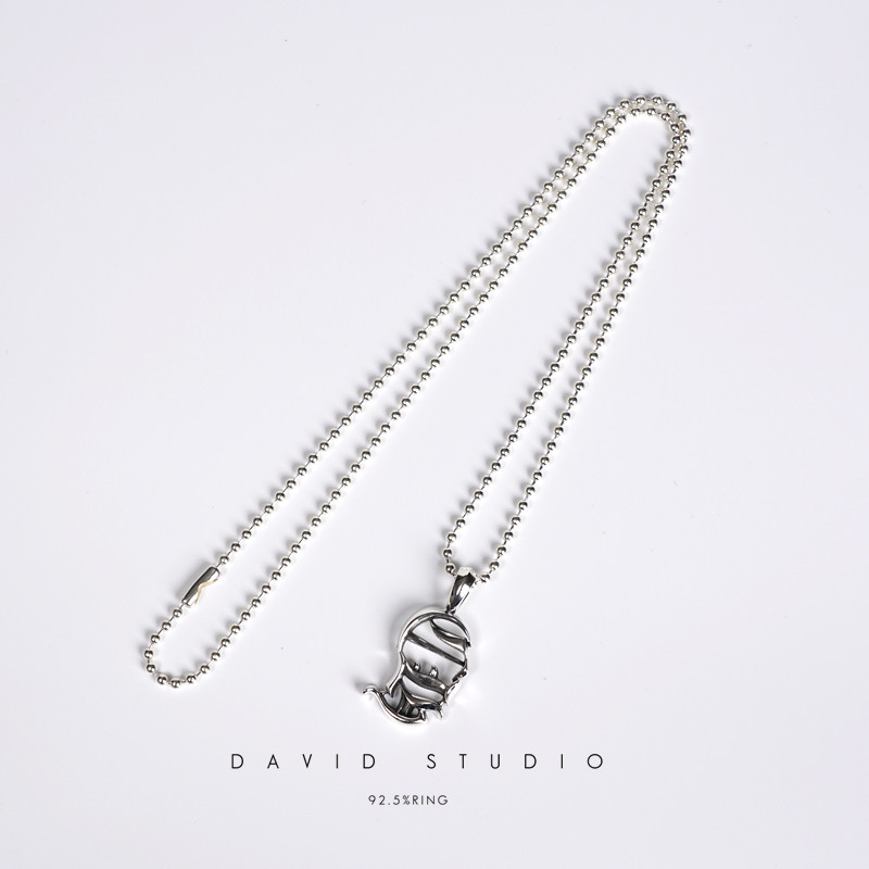 david纯银925纯银ch做旧个性百搭情侣项链 圆珠ins同款女款项链