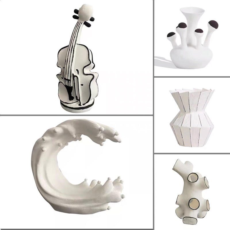 现代简约白色手工陶瓷花器摆件艺术设计家居软装客厅桌面酒店电视