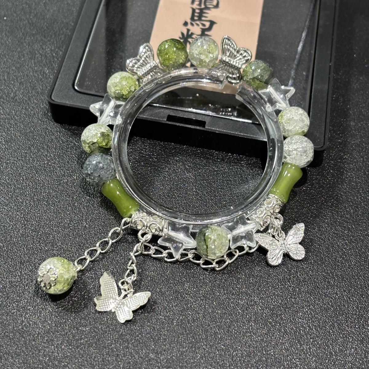 新中式森系儿童绿色竹节蝴蝶串珠手炼女生古风小众手串高颜值手饰