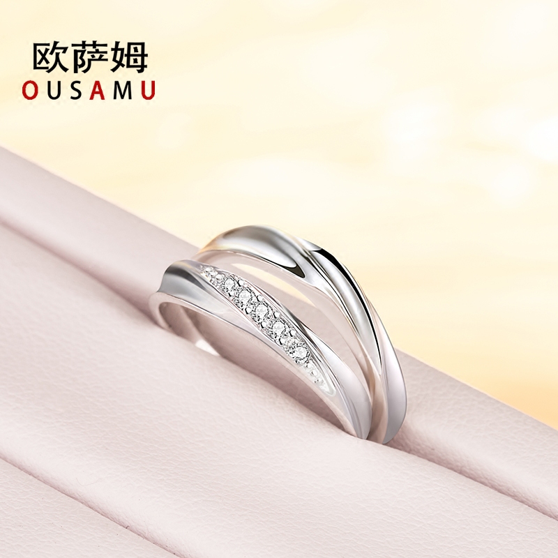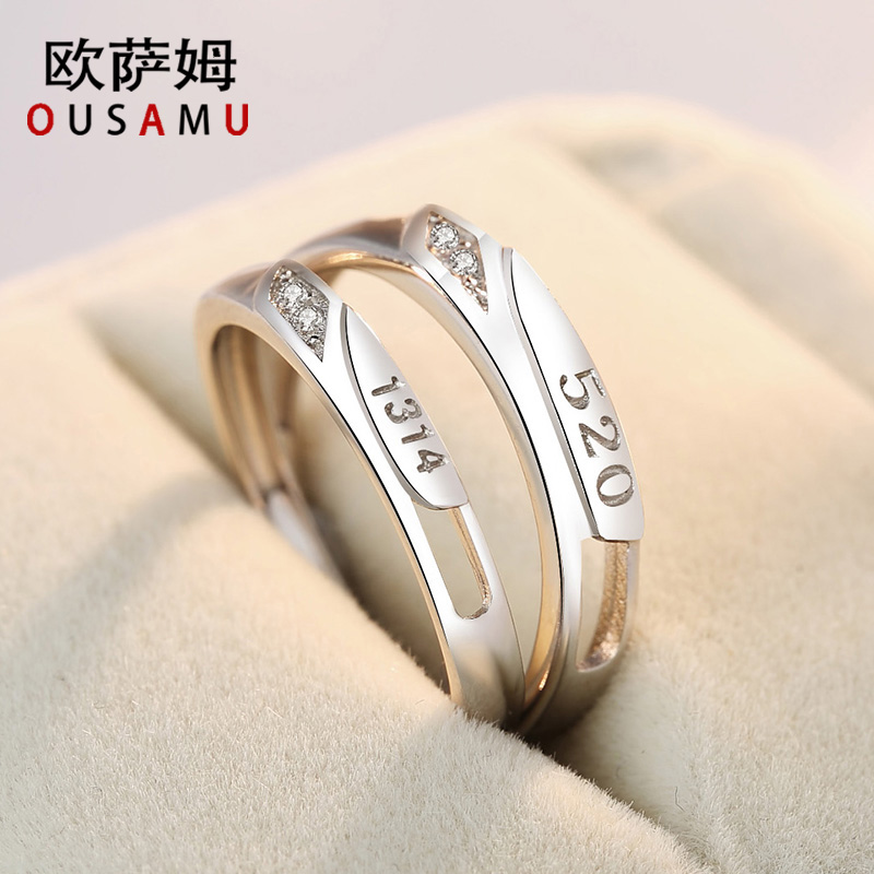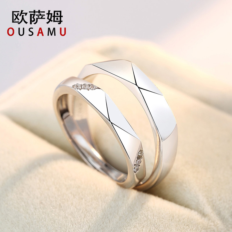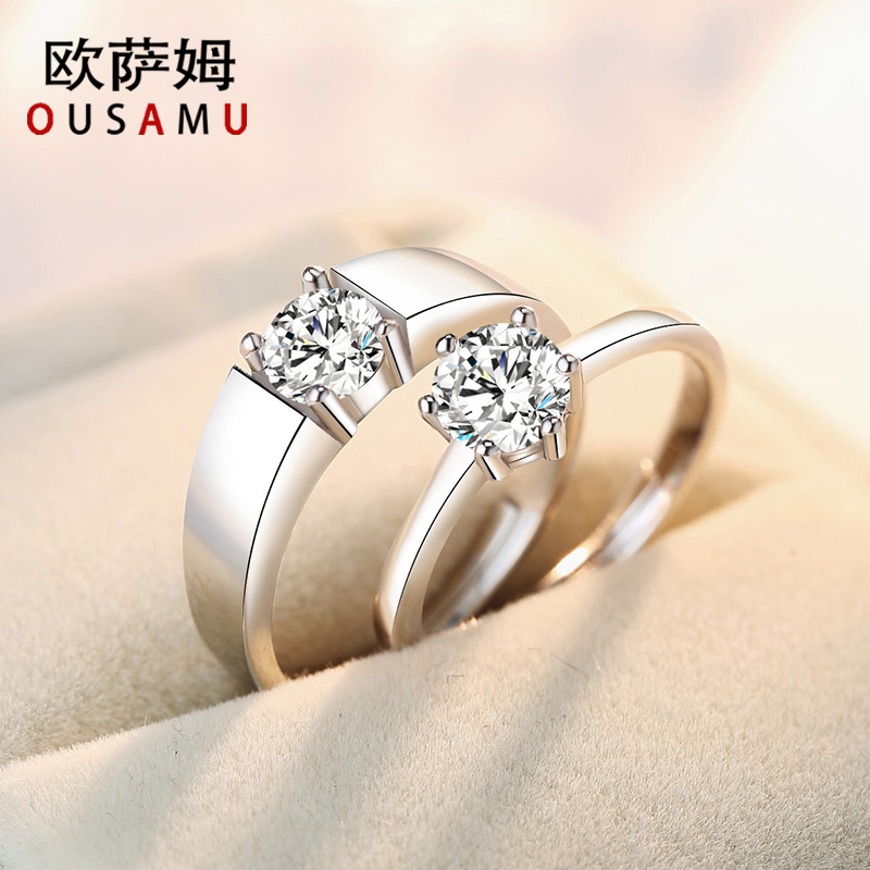 纯银情侣戒指一对求婚开口男女对戒日韩简约网红饰品莫桑石结婚