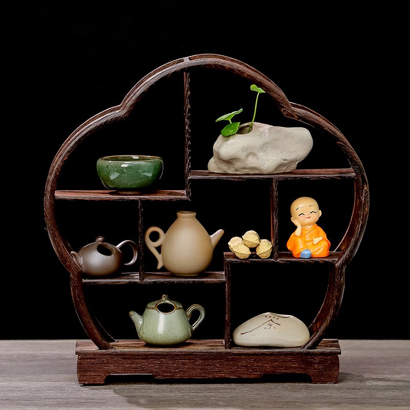 实木茶杯小型博古架n新中式收纳桌面围炉茶室摆件展示置物架子摆