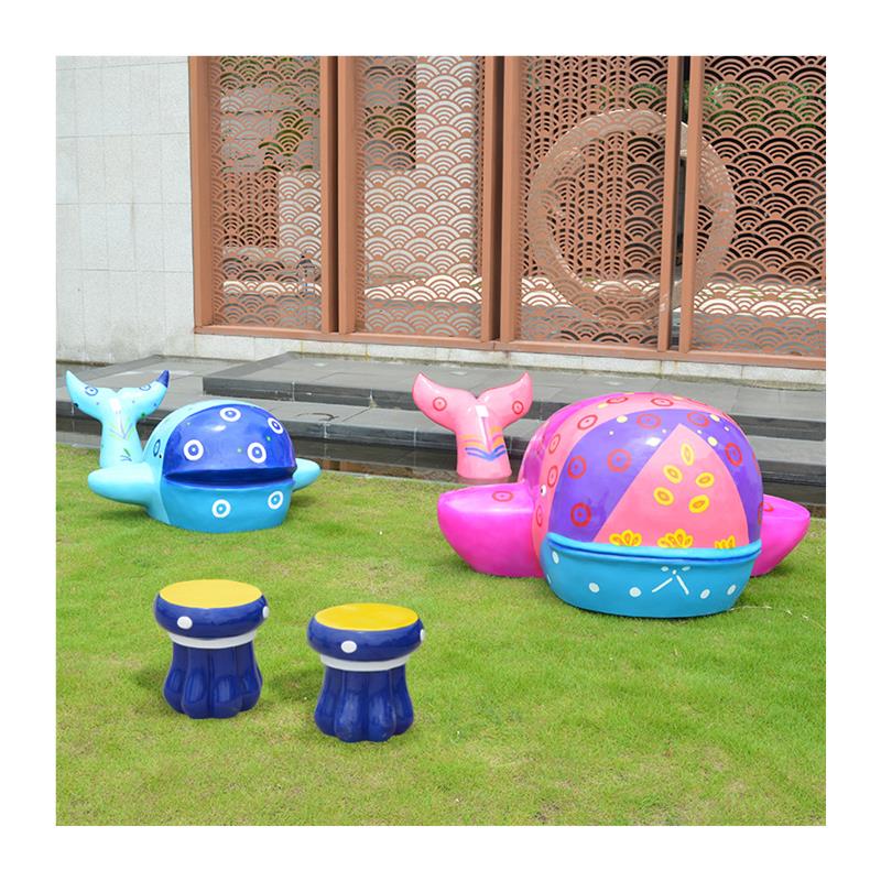玻璃钢鲸鱼座椅雕塑小区商场公园售楼部装饰卡通蘑菇桌椅摆件造景