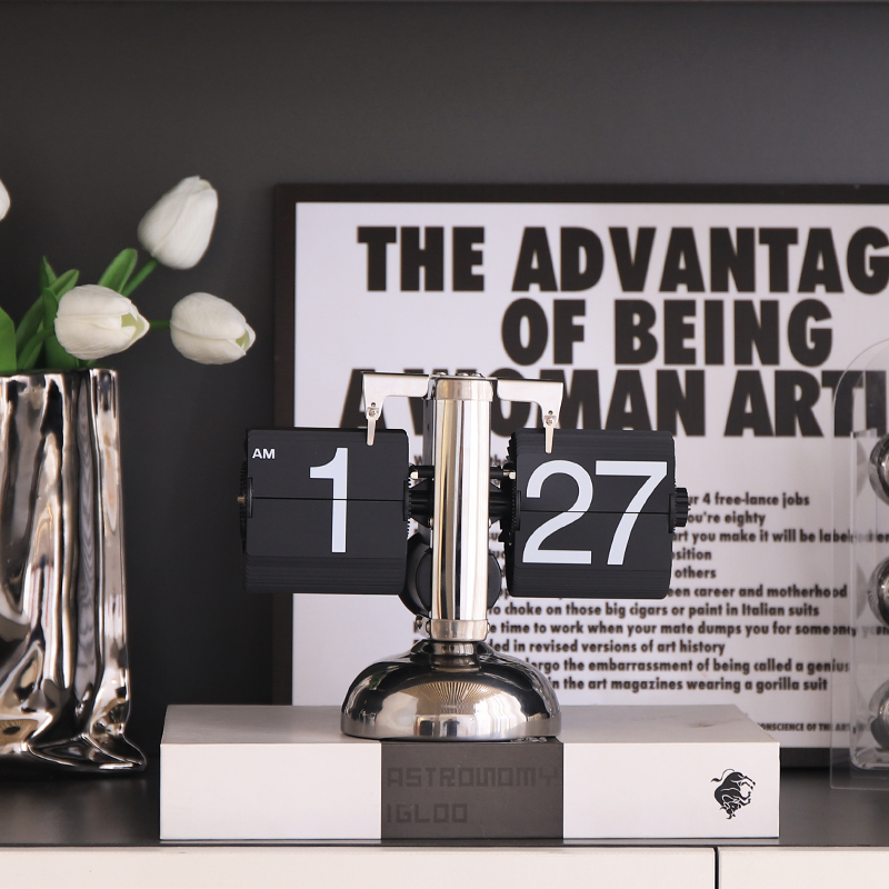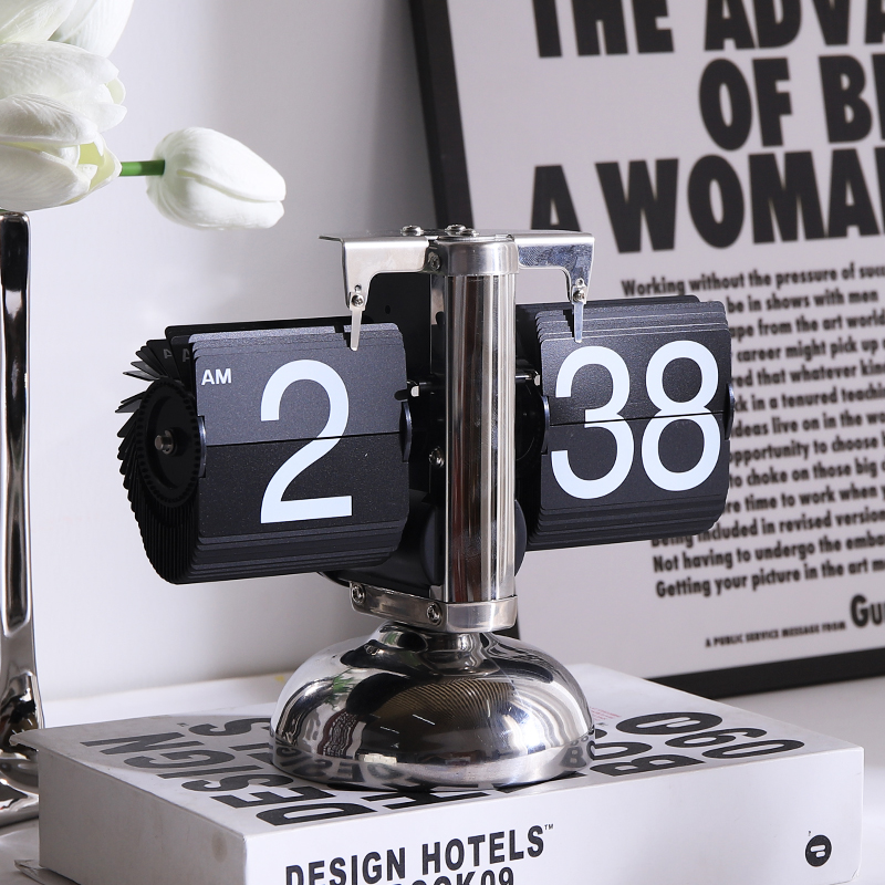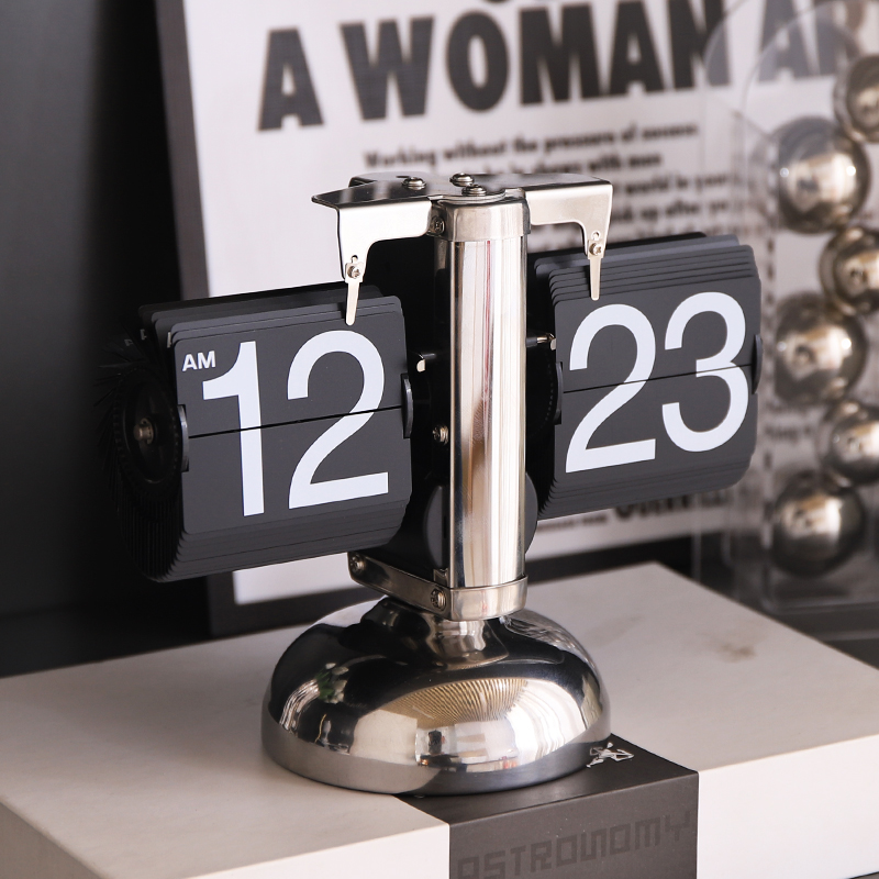 网红机械自动翻页时钟p轻奢摆件高端现代电子日历数字桌面摆放台