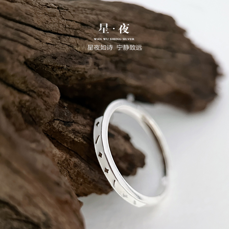万物笙[星夜]纯银滴釉星星戒指女小众简约99足银中指环开口可调节