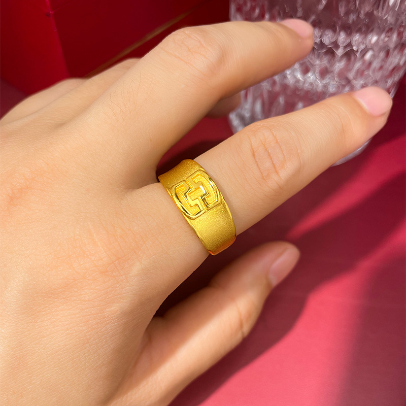 金店同款沙金经文戒指男女小众设计师高级感开口戒子新款直播