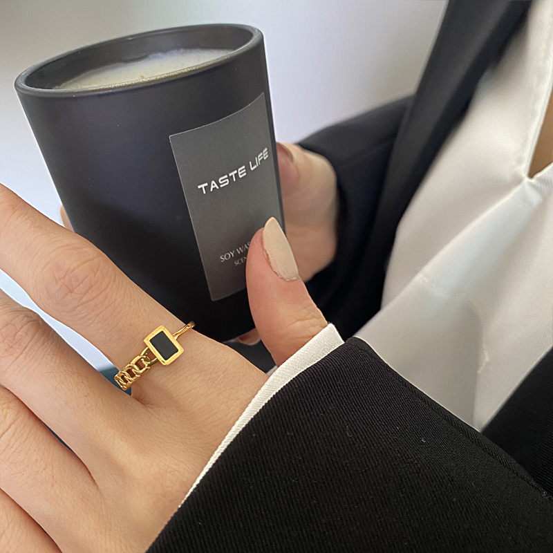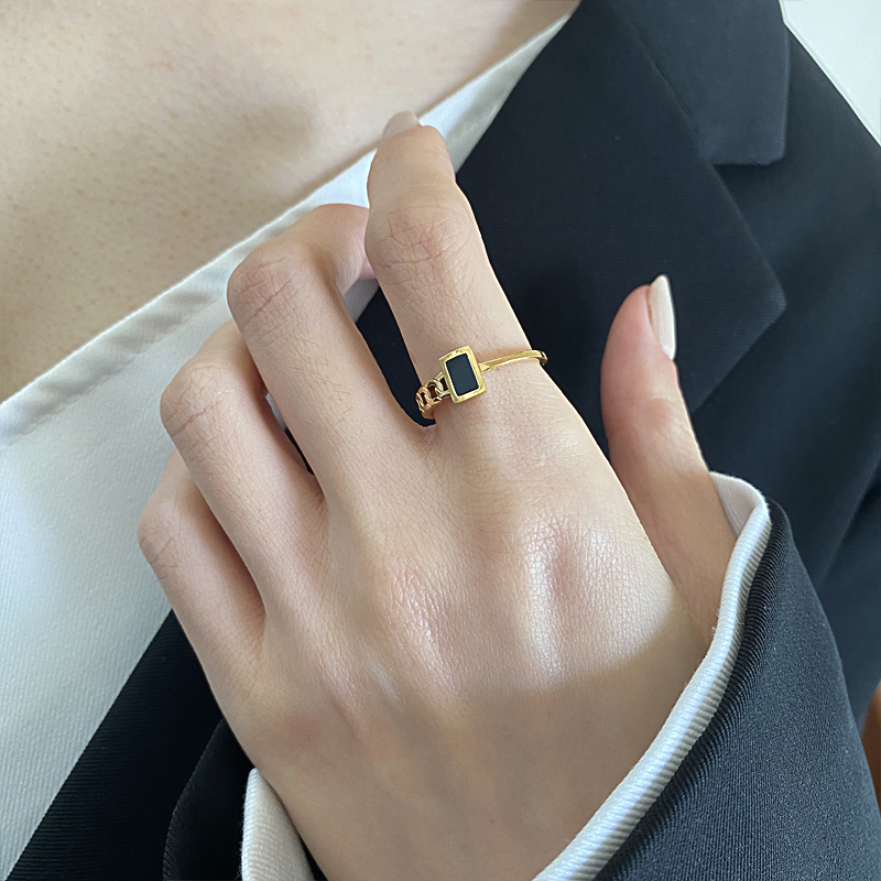 ZUORAN 黑金时尚高级感不对称设计链条戒指设计师款气质百搭RF153